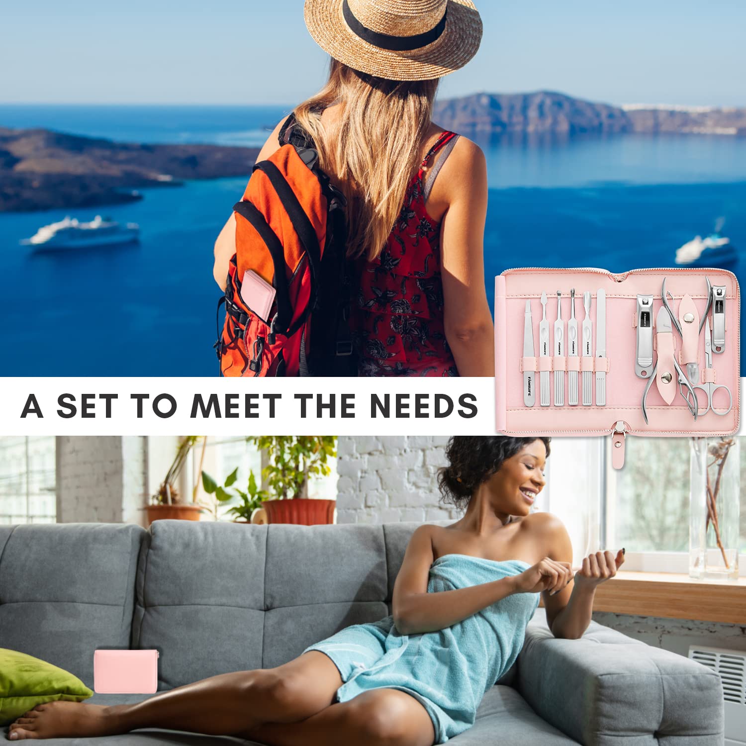 FAMILIFE Manicure Set Professional Manicure Kit Nail Kit - 11PCS Gifts for Her Nail Clippers for Women Stainless Steel Pedicure Sets Pink Leather Case