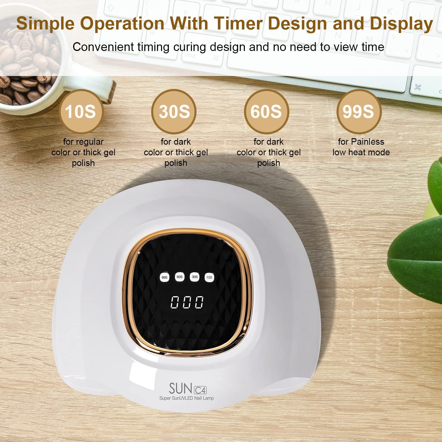 - Featuring 4 timing settings and an infrared automatic sensor, this nail lamp offers customizable and hassle-free operation.