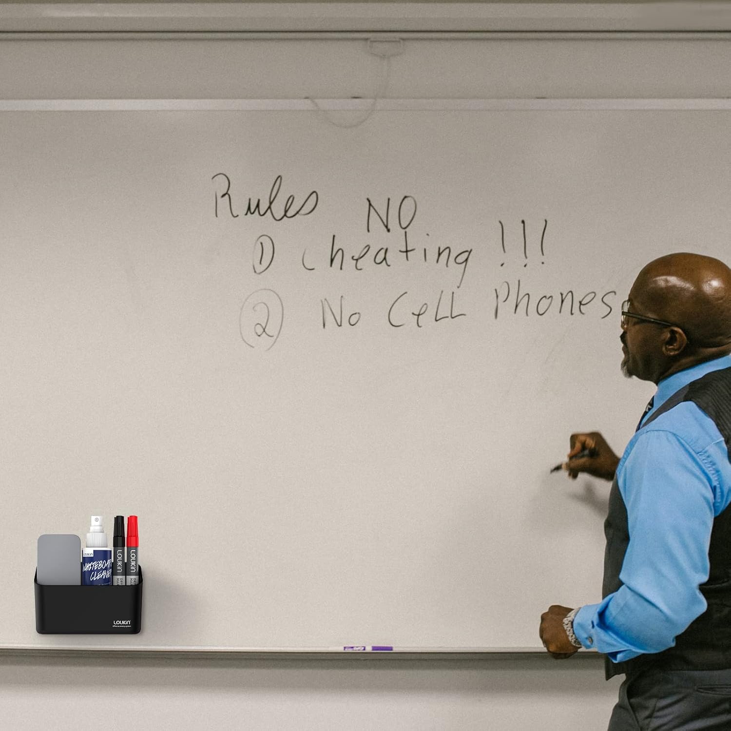 loukin Magnetic Marker Holder Set, Dry Erase Marker Holder, Dry Erase Accessory Tray Set (Includes 1 Eraser, 1 Cleaner, 2 Dry Erase Markers), Ideal for Office, School or Home Use(Black)