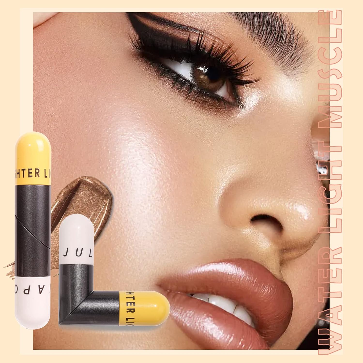 - 【Product Features】: Double-ended design gives you a choice of Sakura pink and warm brown. It can be a love or a straight shape. Often used on the face and body, it adds radiance to the face and makes the skin look sun-kissed. Liquid highlighter cream with illuminating ingredients is super soft and creates a full body shimmering effect.