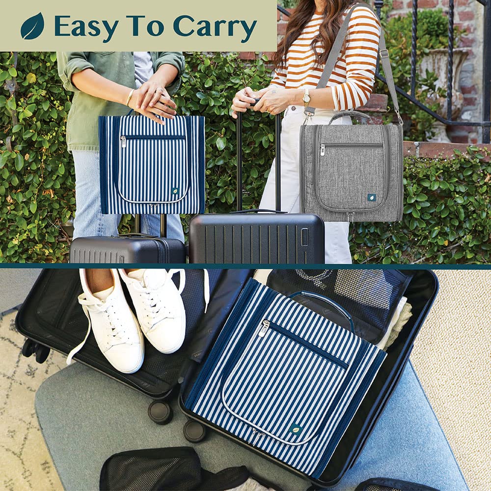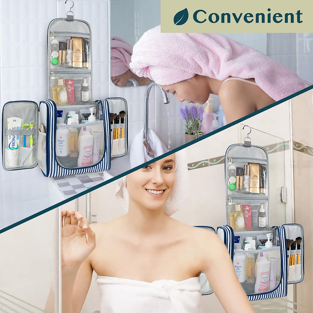 PAVILIA Extra Large Toiletry Bag Travel Bag for Women Men, Hanging Cosmetic Organizer, Water Resistant Makeup Bag for Accessories Toiletries, Travel Essentials Kit (Stripe Navy)