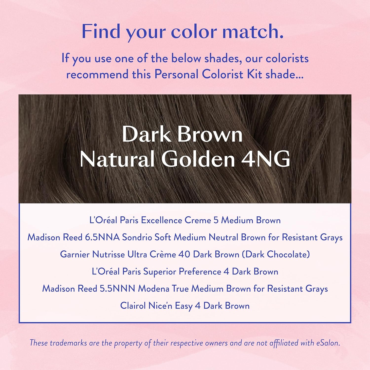 eSalon Permanent Hair Color & Hair Dye Kit - Dark Brown Natural Golden - Personal Colorist for Up To 100% Gray Coverage, All Hair Types - Professional-Grade Ammonia-Free Dye