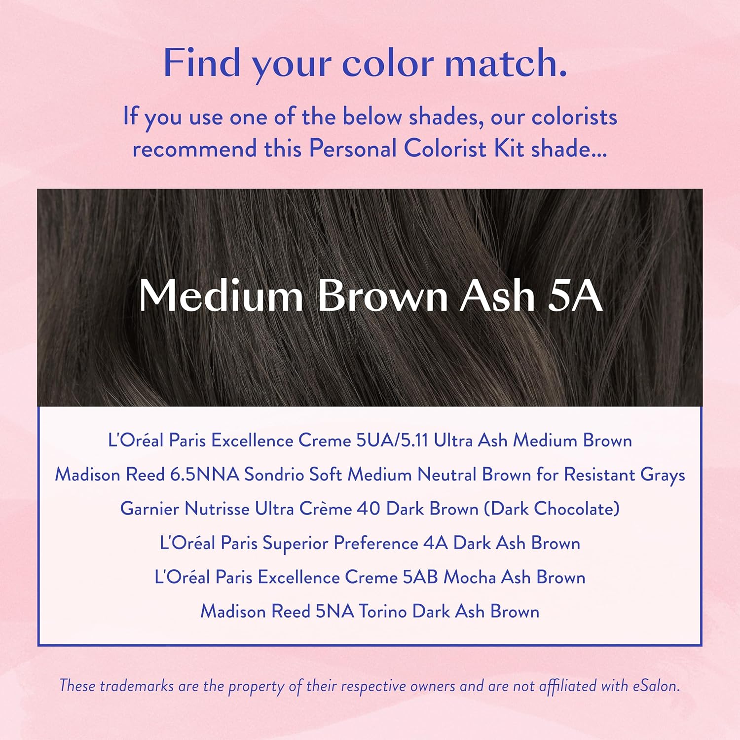 - Your Hair Color, Your Way: Crafted by real-life colorists and inspired by your individuality, eSalon’s hair color and care products are thoughtfully designed to fit your unique needs – not the other way around.