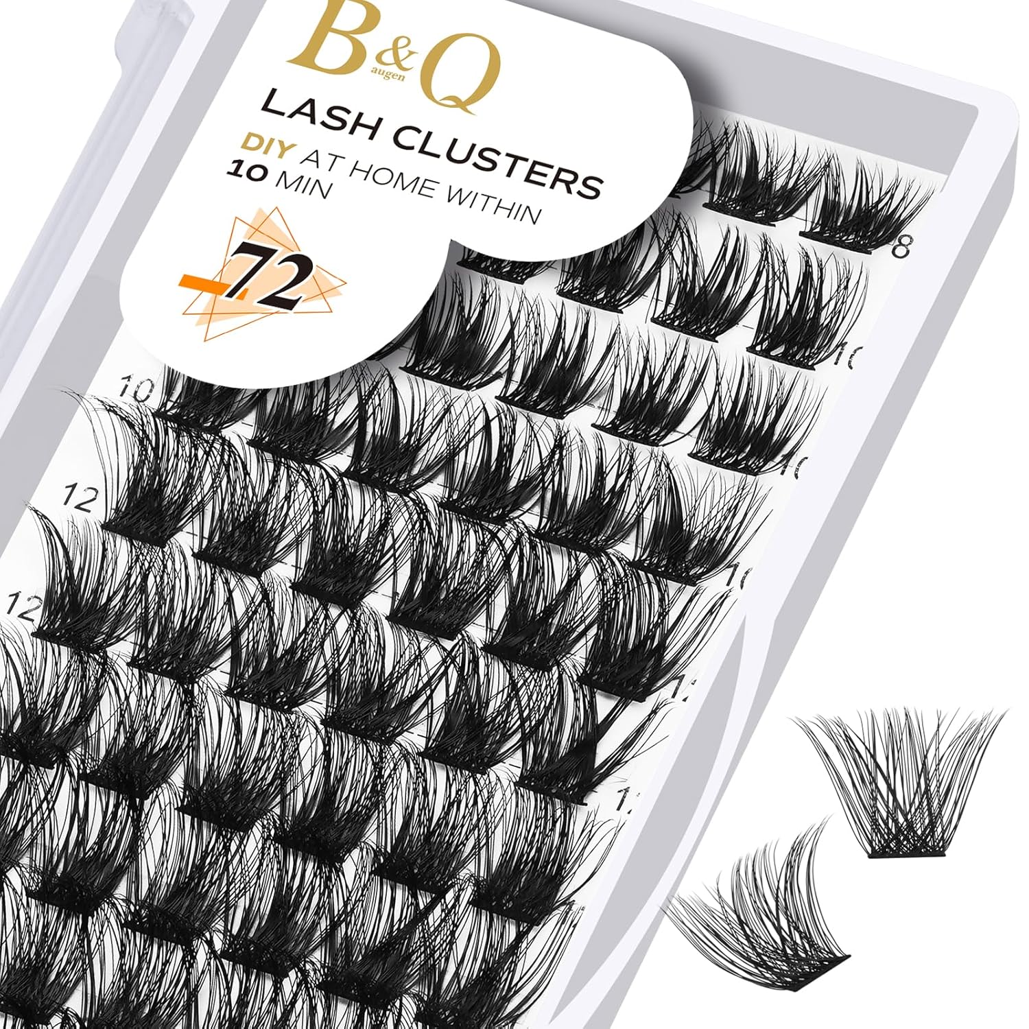 - 【Great Quality】: B&Qaugen cluster lashes look real, not plasticky, gorgeous results, and lash clusters do not easily fall apart. They are reusable with proper care. Easy to take off and these individual eyelashes will not be broken when getting them off the backing with tweezers. The lash clusters last for weeks. Soft, lightweight, vegan, knot-free, and matte dark.
