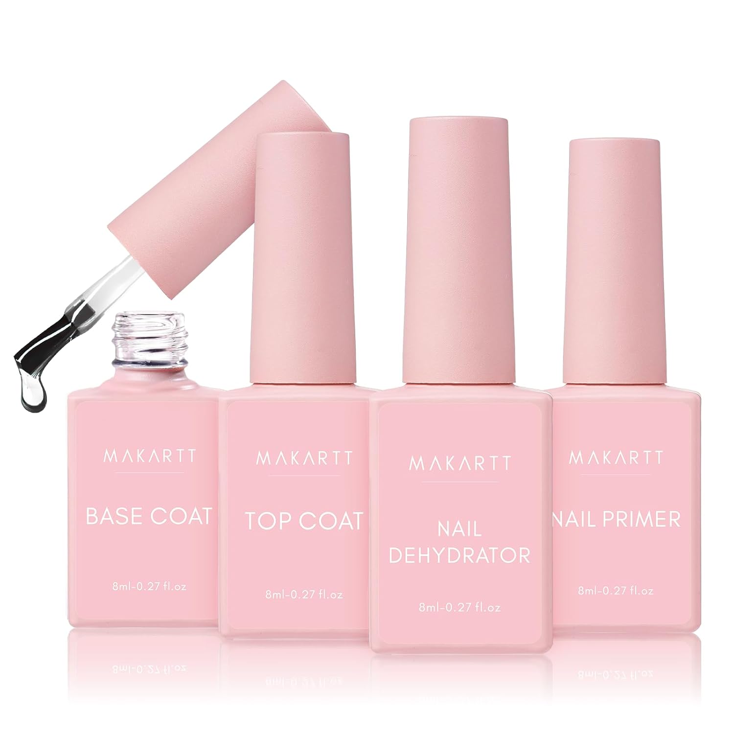 Makartt Gel Polish Top Coat & Base Coat Set with Acid Free Nail Primer and Prep Dehydrator(8ml)