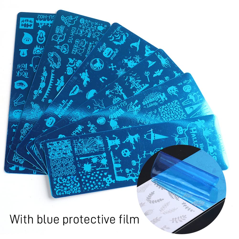 - [Package]:🎃Our Halloween nail art stamping set includes 6pcs nail stamping plates, 1 Stamper, 1 Lace scraper, and the size of each stamping plate is 4.72*1.57 inch.