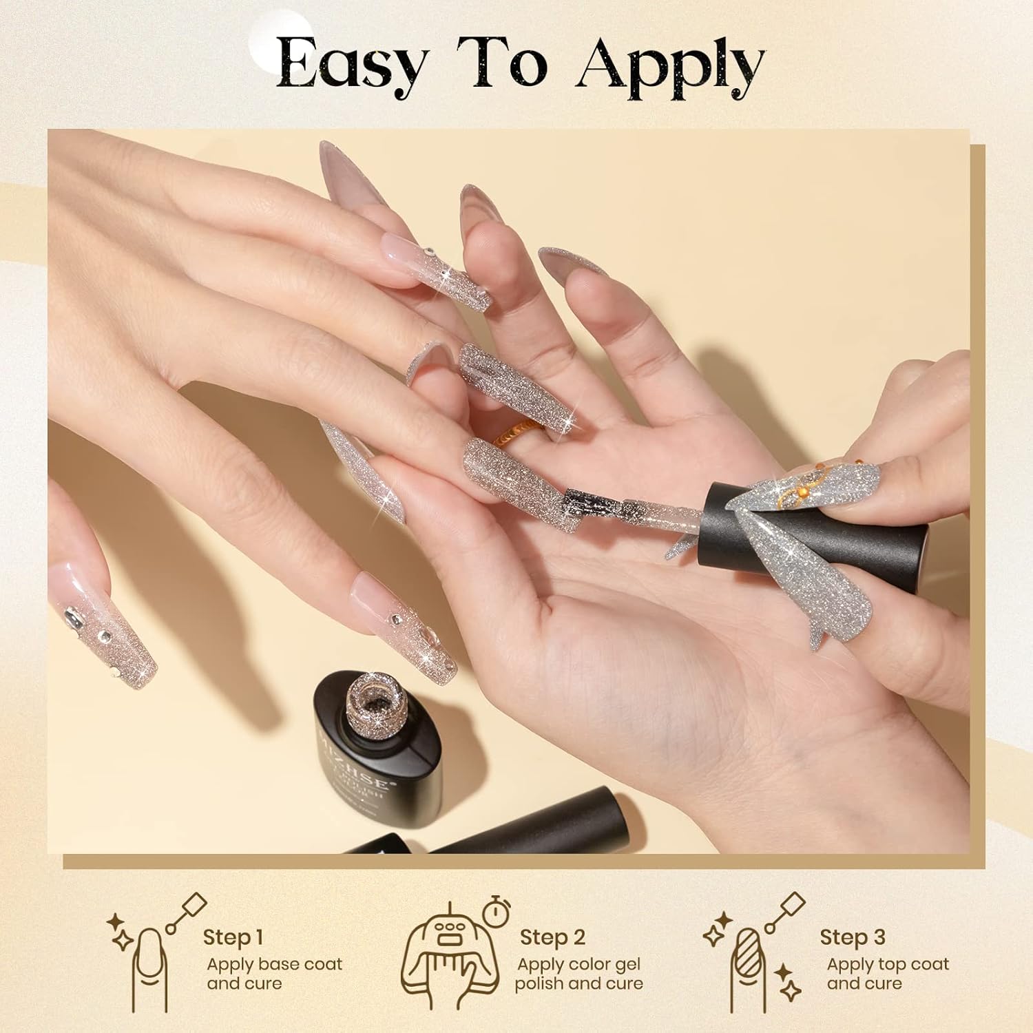 MIZHSE Reflective Gel Nail Polish, Glitter Silver and Gold Gel Polish 2 Colors, Sparkle Shiny Diamond Nail Gel Manicure Set Nail Art at Home Salon 10ML