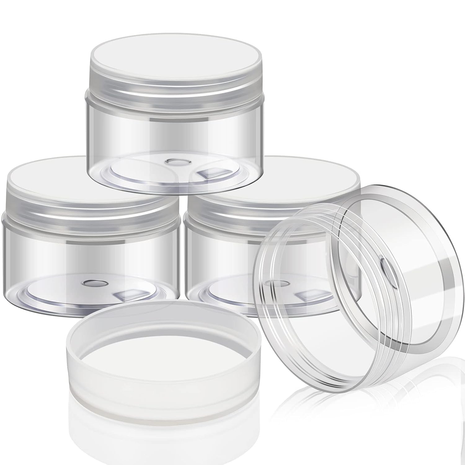 - What you receive: there are 4 pieces plastic jars with clear screw-on lids. They are durable and refillable, measuring about 5.2 cm/ 2.05 inches in diameter, 4.3 cm/ 1.7 inches in height