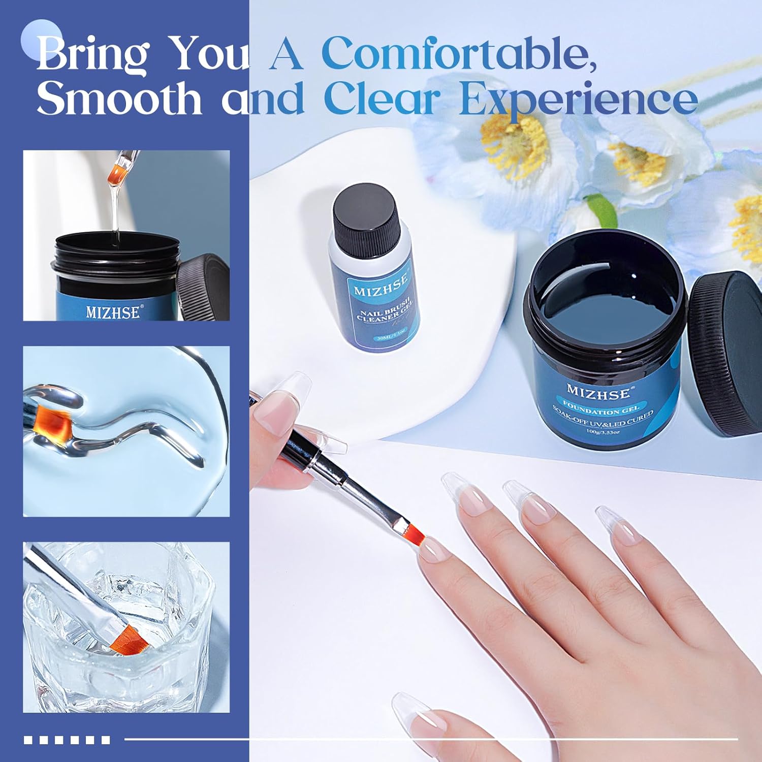 MIZHSE 100ML Base Coat for Gel Nail Polish, Super Large Capacity Base Coat Upgraded Formula Long-Lasting with Brush and Brush Cleaner Soak Off Nail Salon Home DIY