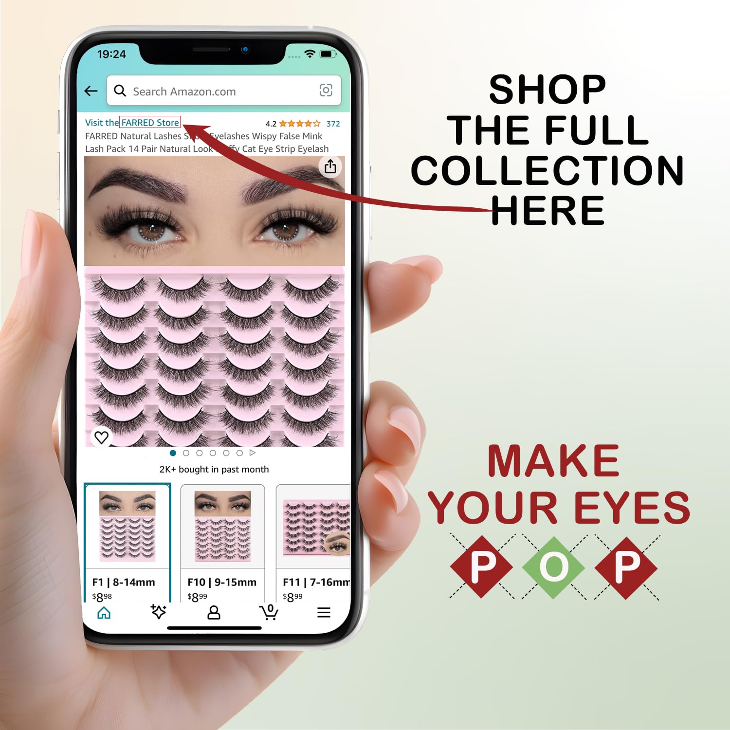 FARRED Lashes Natural Eyelashes Wispy Cat Eye False Lashes Fluffy Fake Eyelash Natural Look 14 Pairs Short Faux Mink Strip Eye Lash Pack for MUA and Beginners Daily Makeup (F4 | 9-16mm)