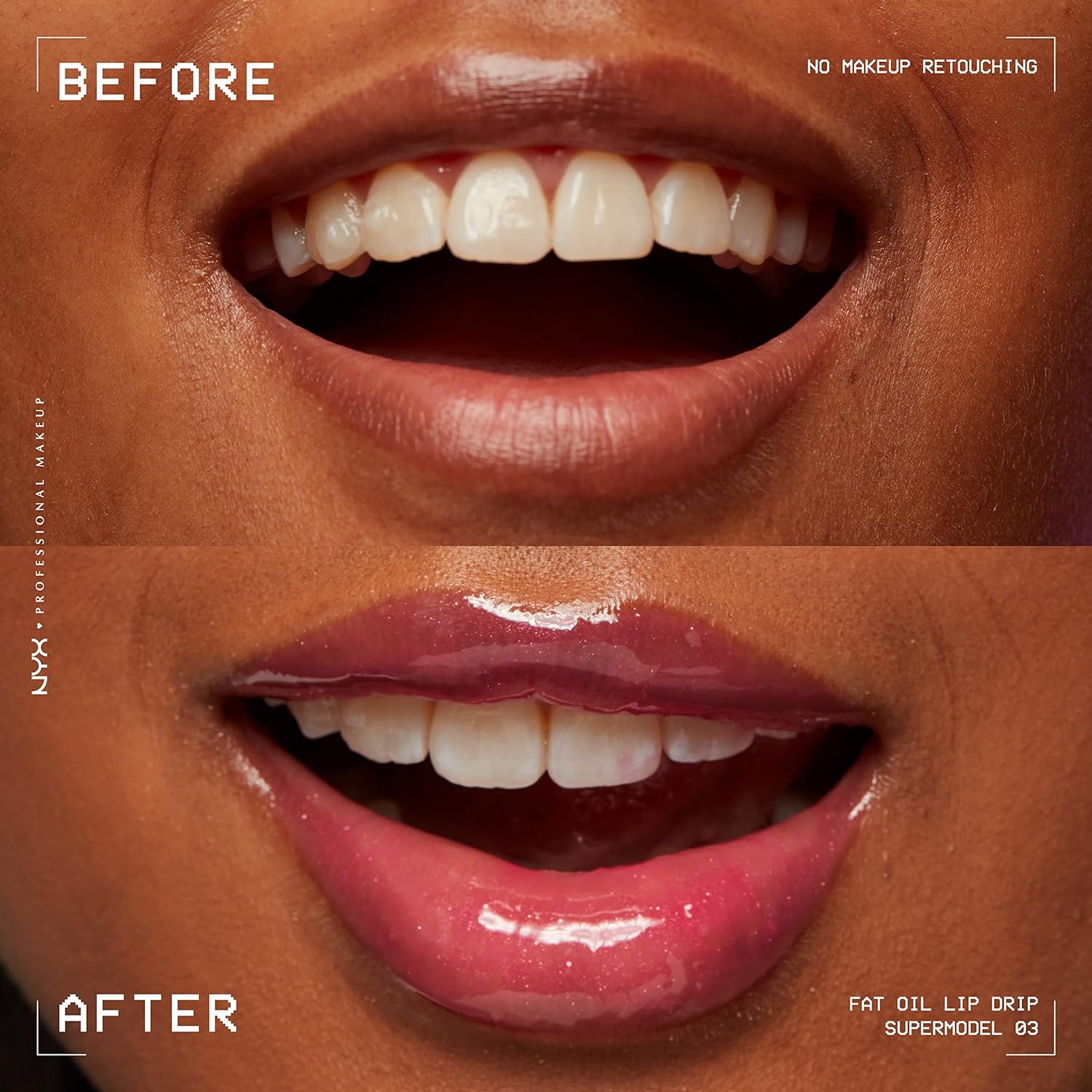 NYX PROFESSIONAL MAKEUP Fat Oil Lip Drip, Moisturizing Lip Oil Gloss, Vegan Tinted Formula, Up to 12 HR Hydration - Supermodel (Shimmering Magenta)