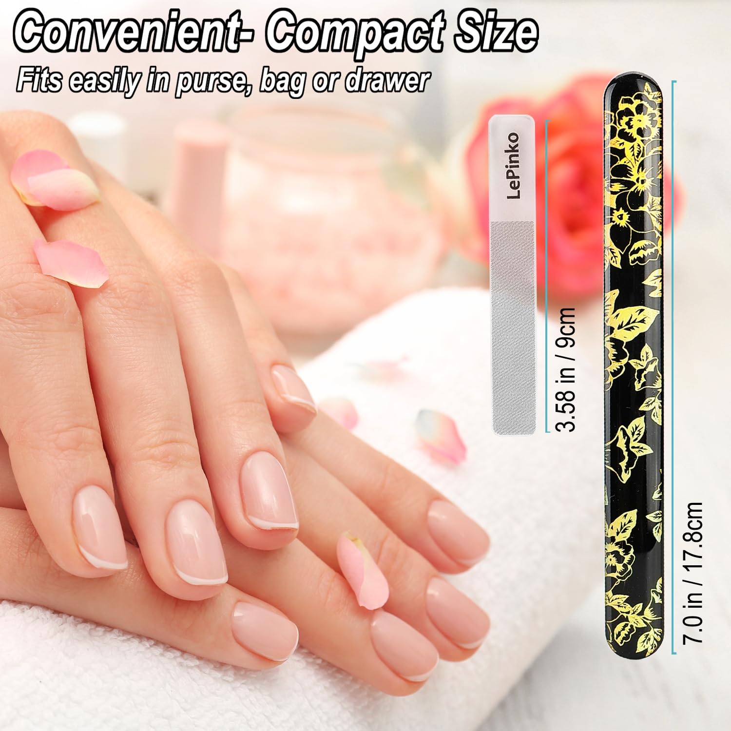 - Keep Nails Beautiful - Remove breaks, rough edges and chips by the fine metal file, and shine your finger and toe nail surface with the nano glass buffer. The long lasting manicure set will keep your nails beautiful as salon at all times.