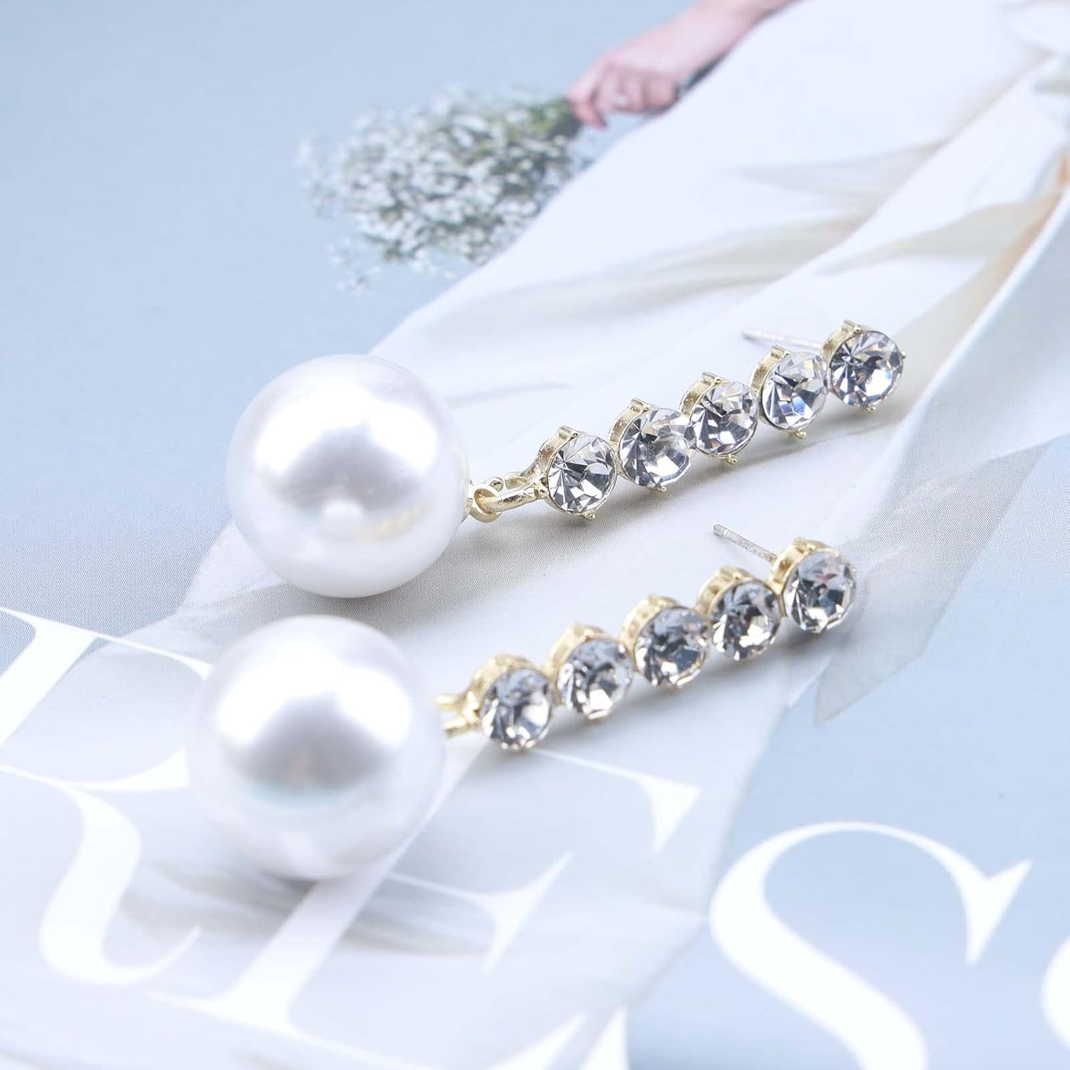 Vintage Pearl Drop Earring Gold Rhinestone Diamond Stud Earrings Cubic Crystal Earrings Wedding Pearl Earrings Jewelry for Women and Girls