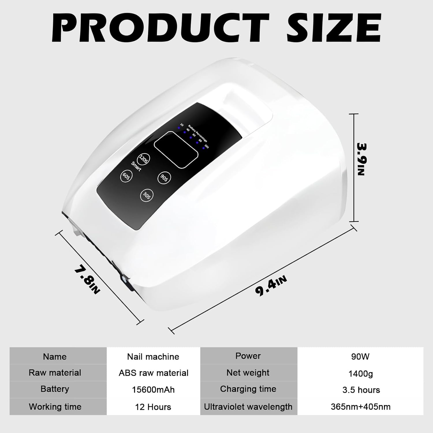 - Model Name : 90W Professional Wireless Cordless Rechargeable UV LED Nail Lamp