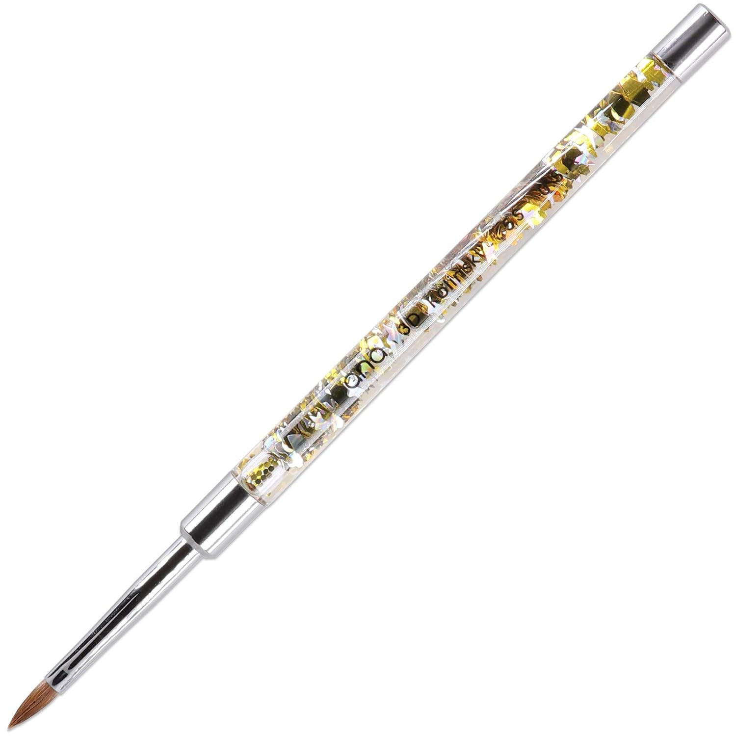 PANA Kolinsky 3D Acrylic Nail Brushes with Liquid Glitter Handle - For Professional Acrylic Powder Liquid Manicure Pedicure (Gold Color, Size #5)