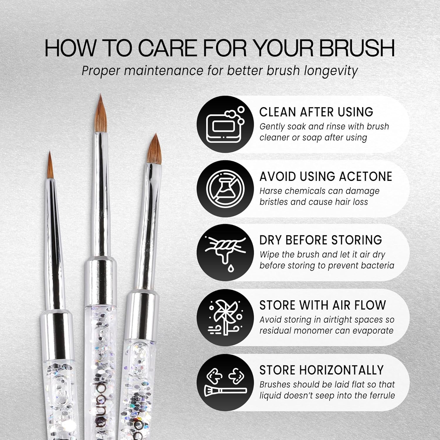 PANA 3D Kolinsky Nail Art Brush - Silver Glitter Handle, Size 2 - Acrylic Nail Art Sculpture Brush for Manicures Pedicure Salon Professional or Beginner