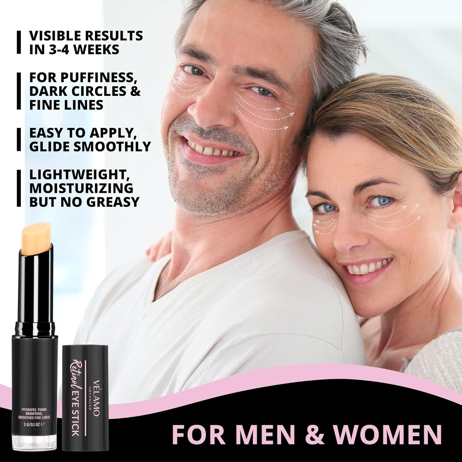 - 🌟The Retinol Eye Cream for Dark Circles and Puffiness - VELAMO ADVANCED retinol eye stick is s a complete multi-treatment balm for younger-looking, brighter, and well-rested eyes. Our eye brightener stick works like a charm as under eye cream anti aging solution. This power-packed and do-it-all balm visibly boosts bounce and moisture levels. Most importantly, it is safe for sensitive skin.