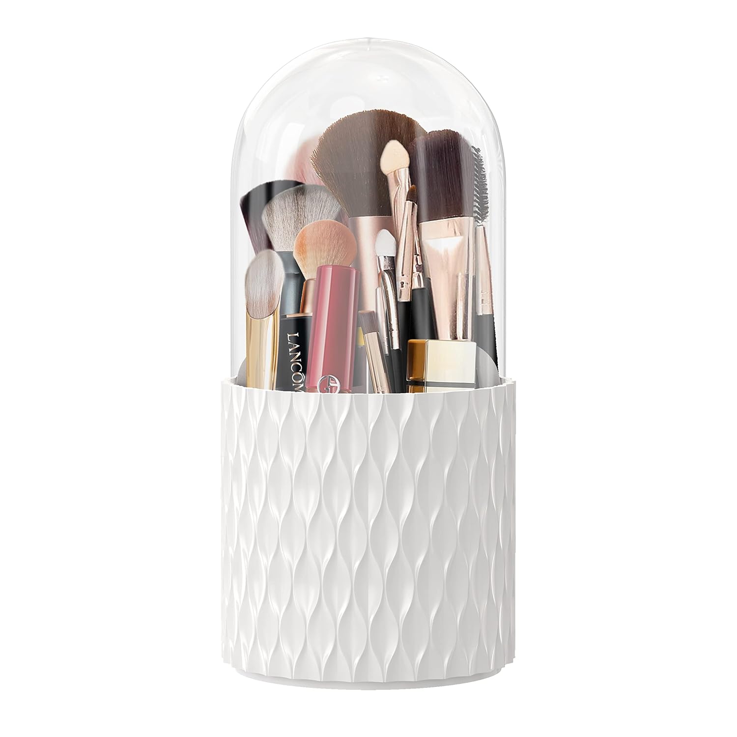 Makeup Brush Holder [Upgrade] [Dustproof & Waterproof] 360 Rotating Cosmetics Make up Brush Organizer Storage with Lid for Vanity