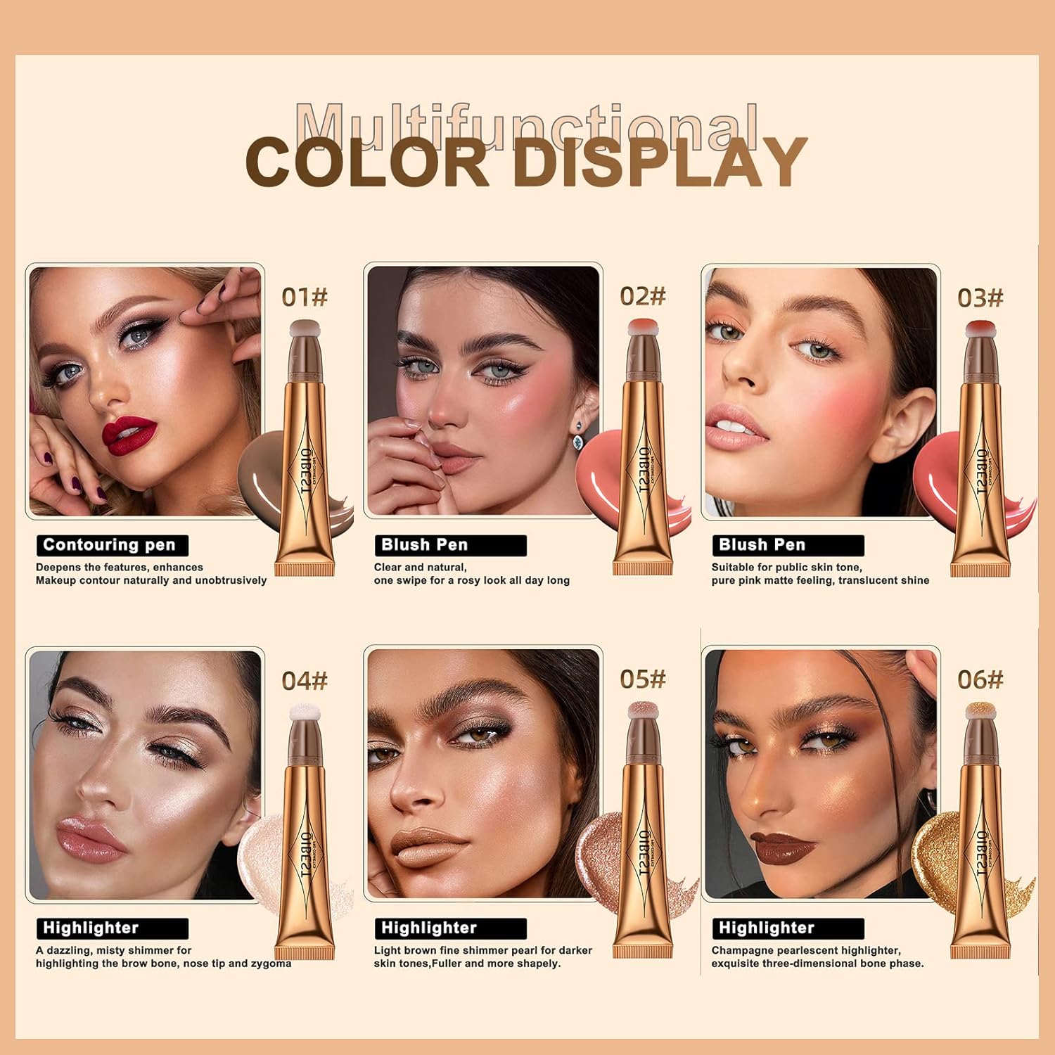 - 【Multi-Functional Makeup Pen】The beauty wands are available in 6 colors for different makeup effects. Color #01 is for contour; #02.03 are for cheek blush; #04.05.06 are for face body highlight. Perfect for daily makeup, meet your diverse needs.