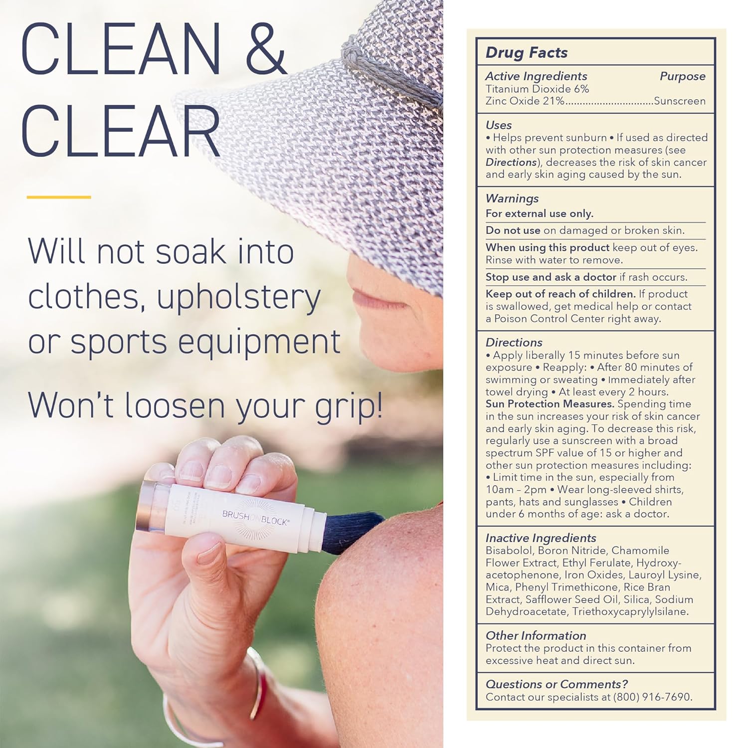 Brush On Block SPF 50 Mineral Powder Sunscreen, Translucent, Broad Spectrum, Water Resistant Face Protection, For All Skin Tones & Types, Reef Friendly, Mfg in USA