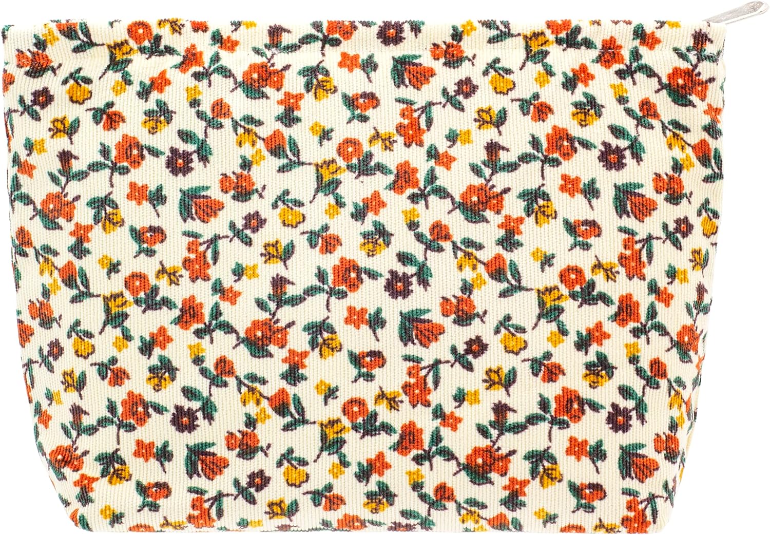 PAZIMIIK Makeup Bag Large Zipper Corduroy Make Up Pouch for Purse Travel Canvas Cosmetic Organizer for Women Brush Storage,Floral White