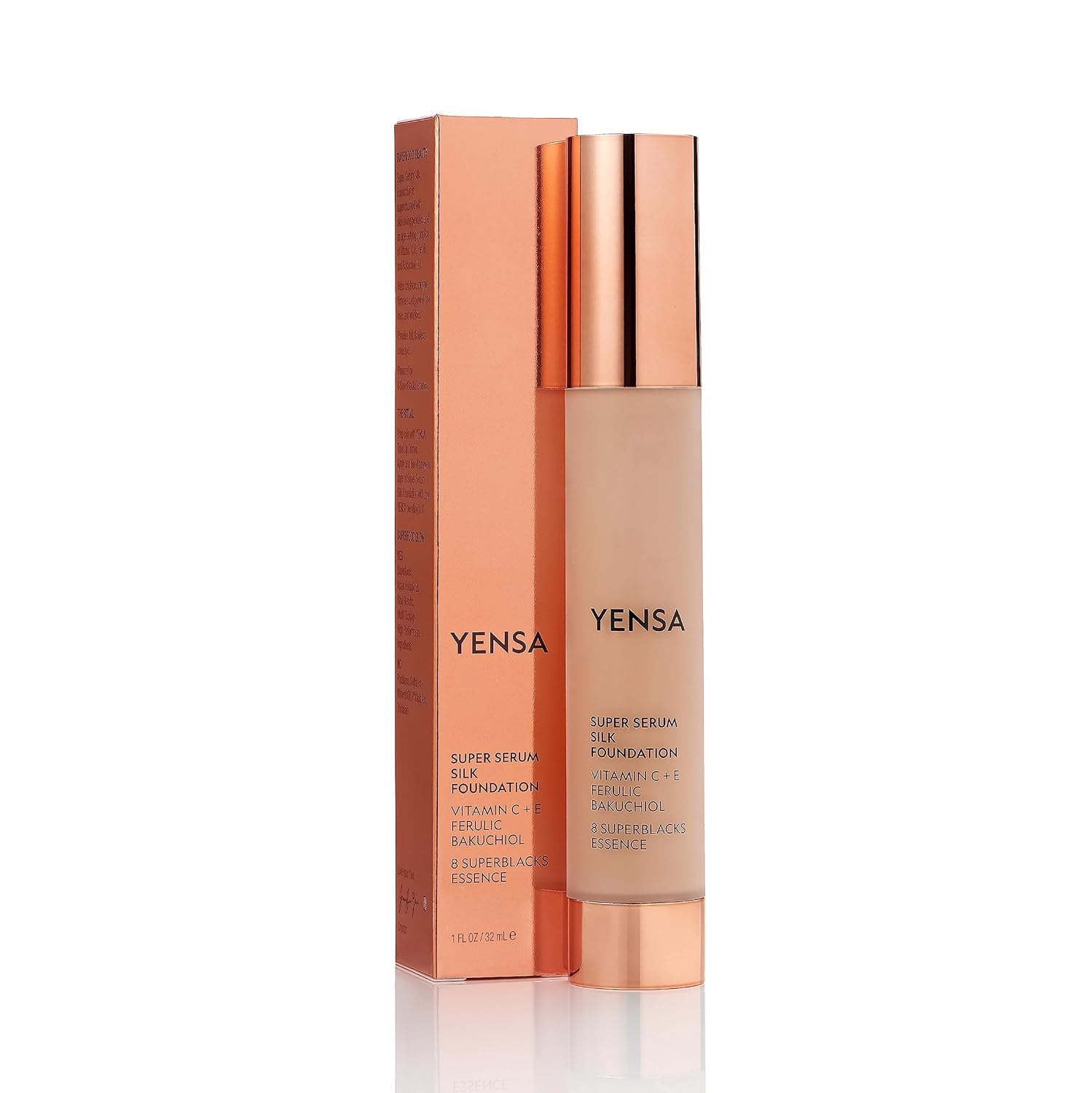 YENSA Super Silk Foundation - Full Coverage, Age-defying complex of Vitamin C, E, Ferulic, and Bakuchiol Oil (Tan 1) 1.0 fl oz