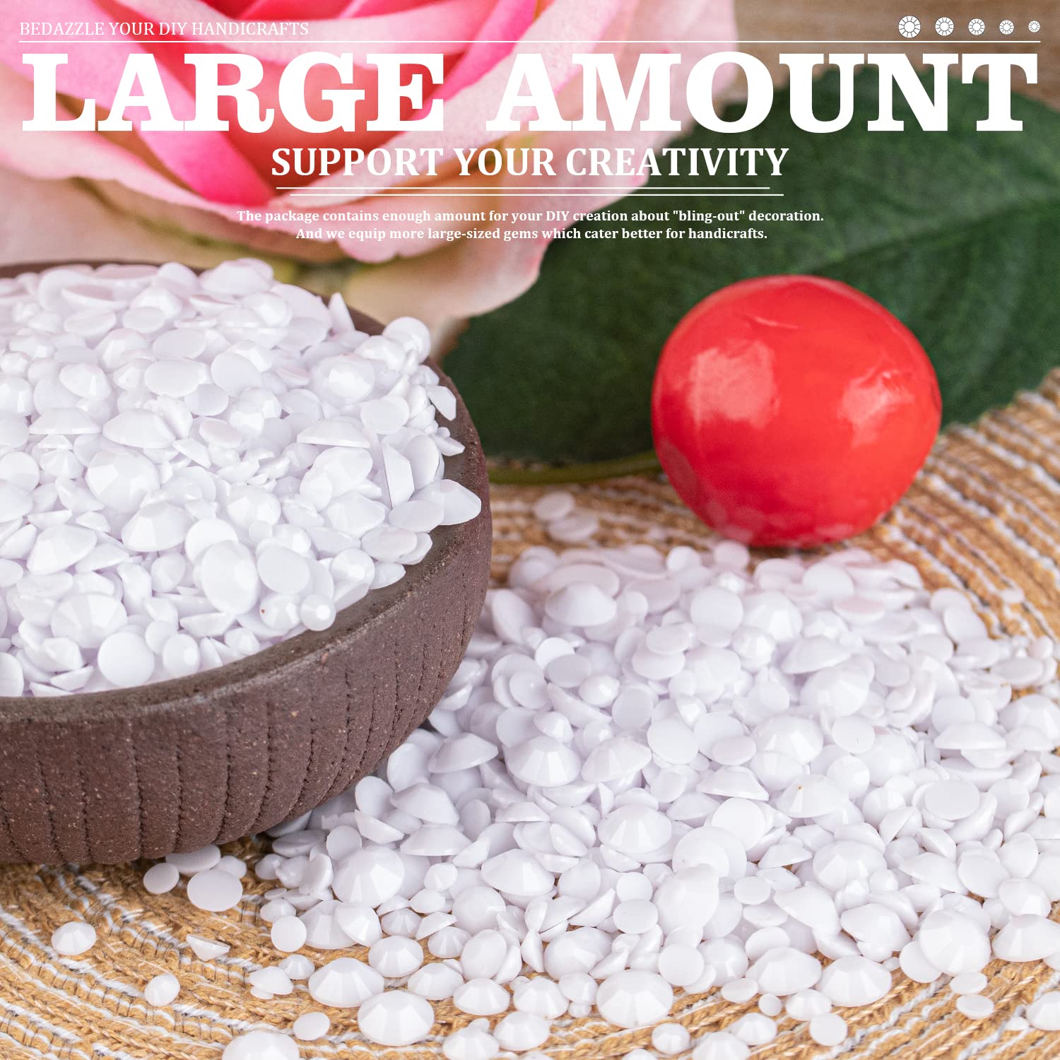 Resin Rhinestones Crafting, 2/3/4/5/6mm Flatback Jelly Rhinestones, 2 Boxes White Non Hotfix Crystal Gems for Bedazzling Crafts Mugs Tumblers Clothes Makeup Nail