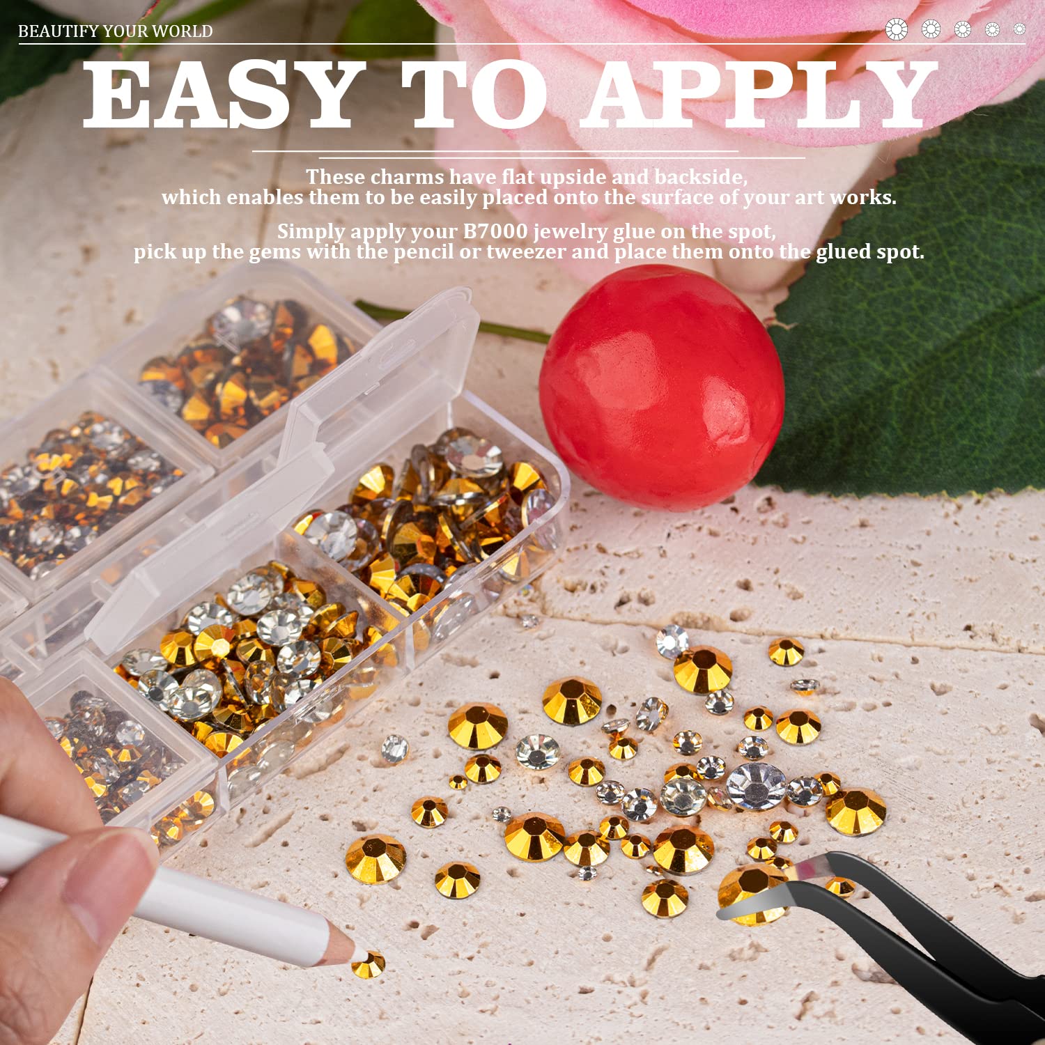 Resin Rhinestones Crafting, 2/3/4/5/6mm Flatback Jelly Rhinestones, 3 Box Mineral Gold Non Hotfix Crystal Gems for Bedazzling Crafts Mugs Tumblers Clothes Makeup Nail