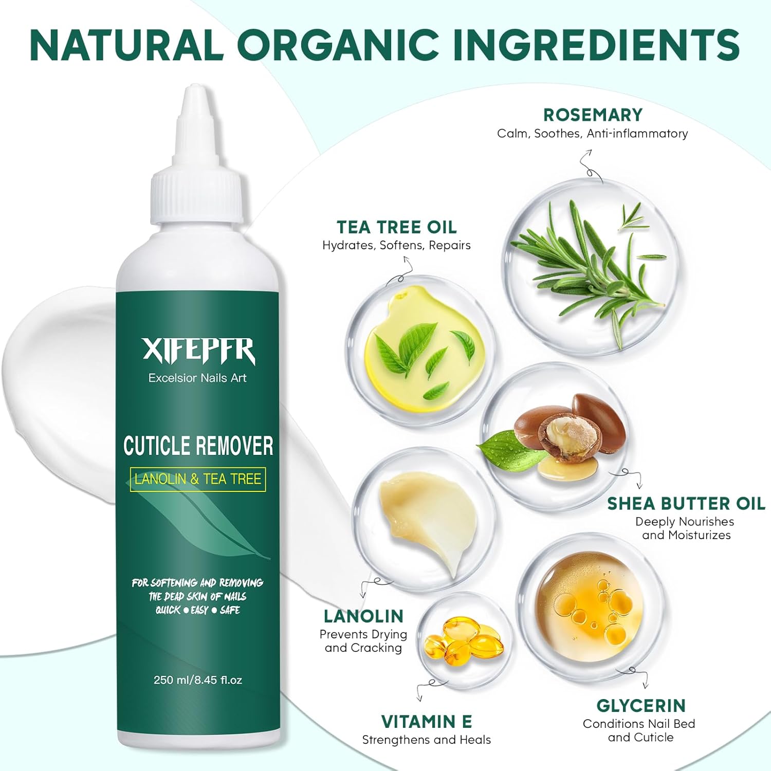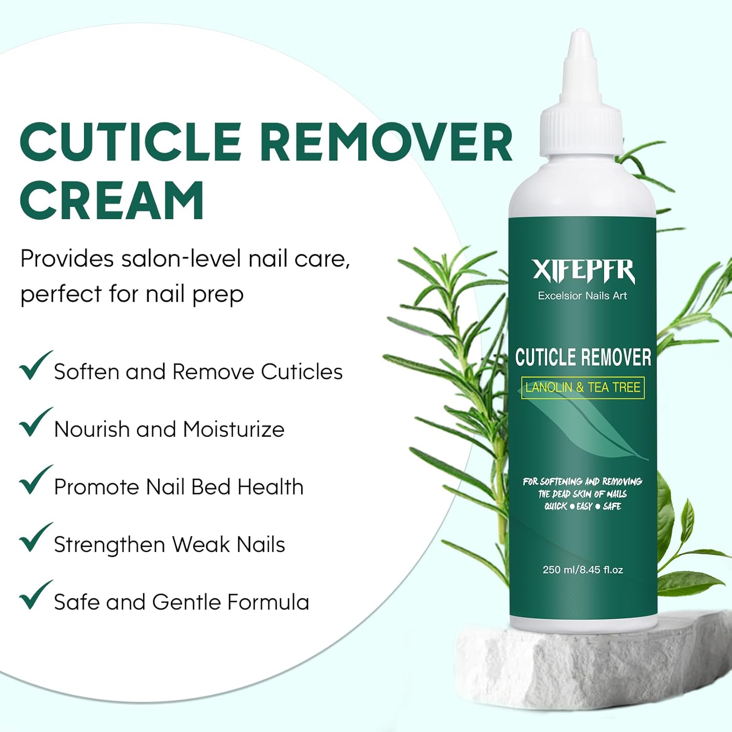 - Deeply Nourishes Cuticle: XIFEPFR 250ml large-capacity cuticle softener cream has a smooth texture, light and easy to absorb, and is not greasy, providing you with SPA-level nail cuticle care. Use cuticle remover liquid daily to moisturize, soften and repair dry, damaged and peeling cuticles.