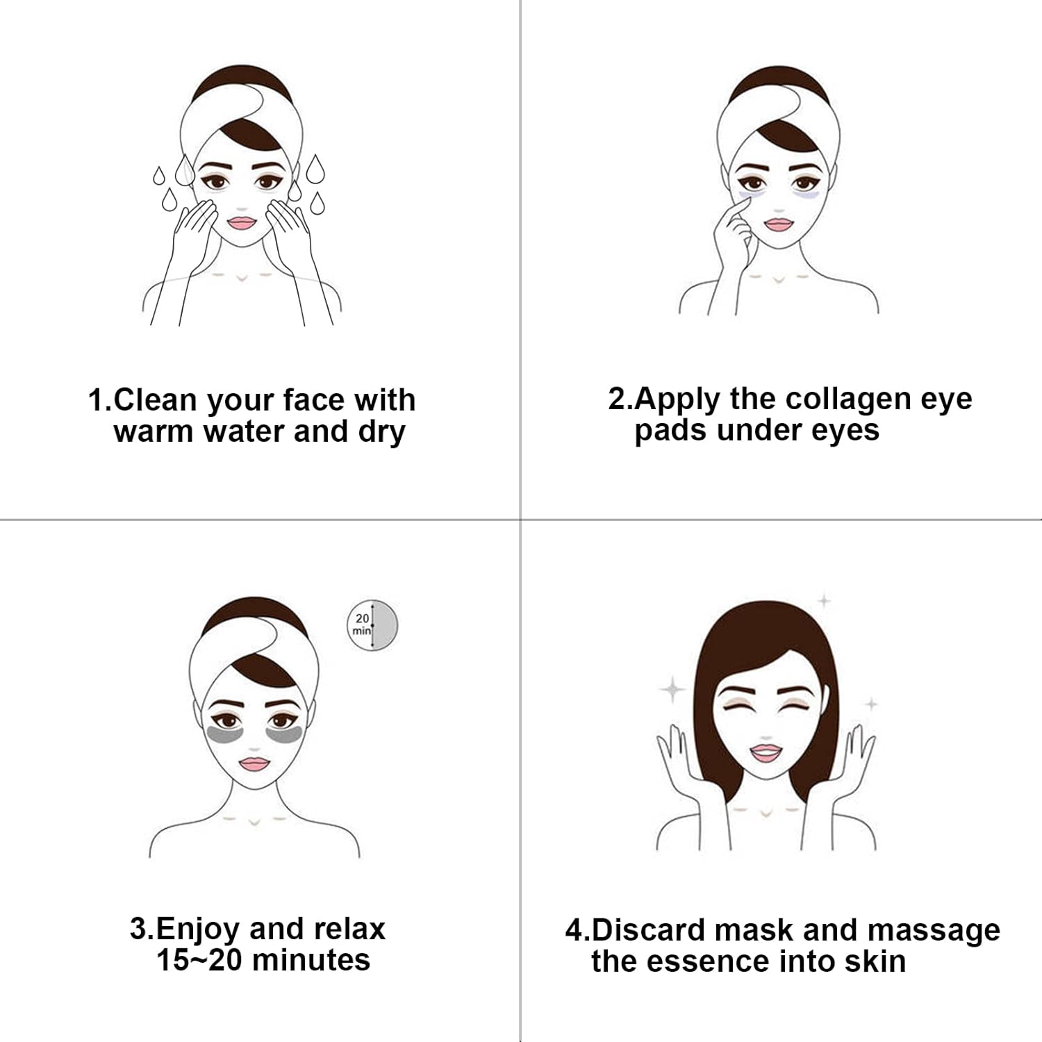 - Collagen under eye patches - Most of essences of mask will be absorbed directly by your skin. The eye mask will gradually be dissolved under eye zone and permeate quickly into the skin, providing the nutrients and moisture needed.