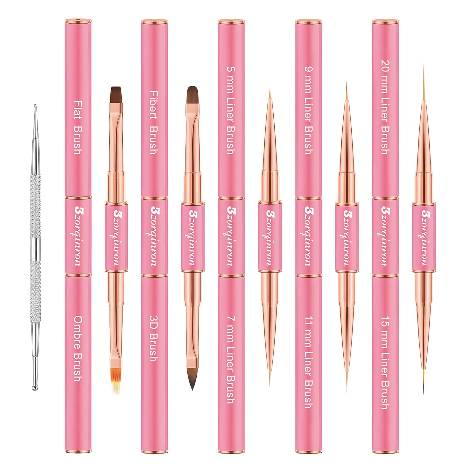 - Versatile Design – Our brushes feature double-heads with 10 different brush heads to choose from, including liner and detail brushes, flat and ombre brushes, a Filbert brush, and a 3D brush, giving you the freedom to create any design you like. Whether you're creating delicate floral patterns or bold abstract designs, these brushes will deliver outstanding results.