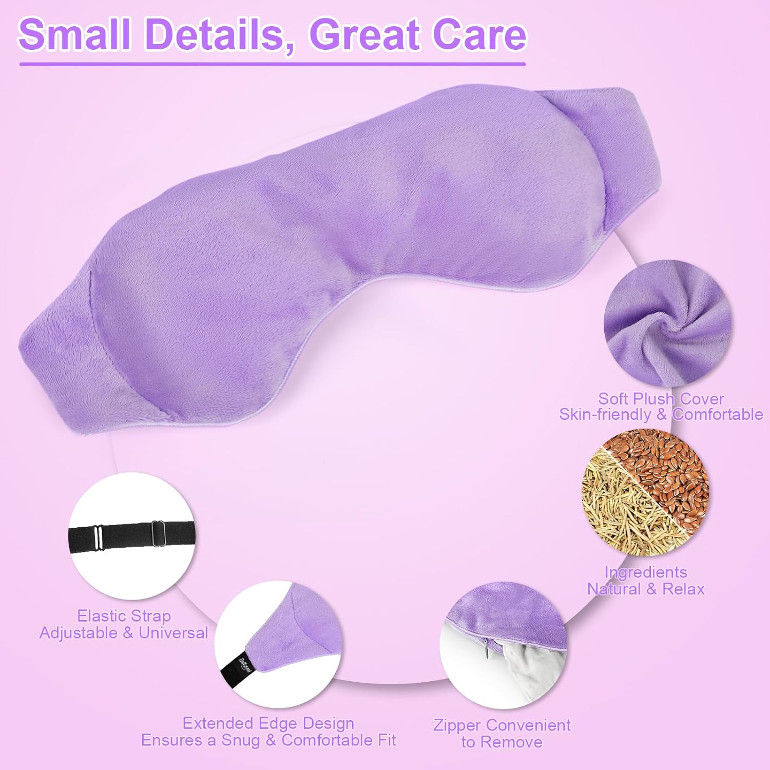 - [Nature Comfort Smell Eye Mask] This natural sleep mask is filled with 95% flaxseeds and 5% rosemary, the scent of rosemary is nature, comforting, refreshing and relaxing. The flaxseeds has a high heat storage and heat transfer effect when microwave heated, you will feel warm and moisture around your eyes with wearing it, the comfort fragrance just like immersed in the flower sea.