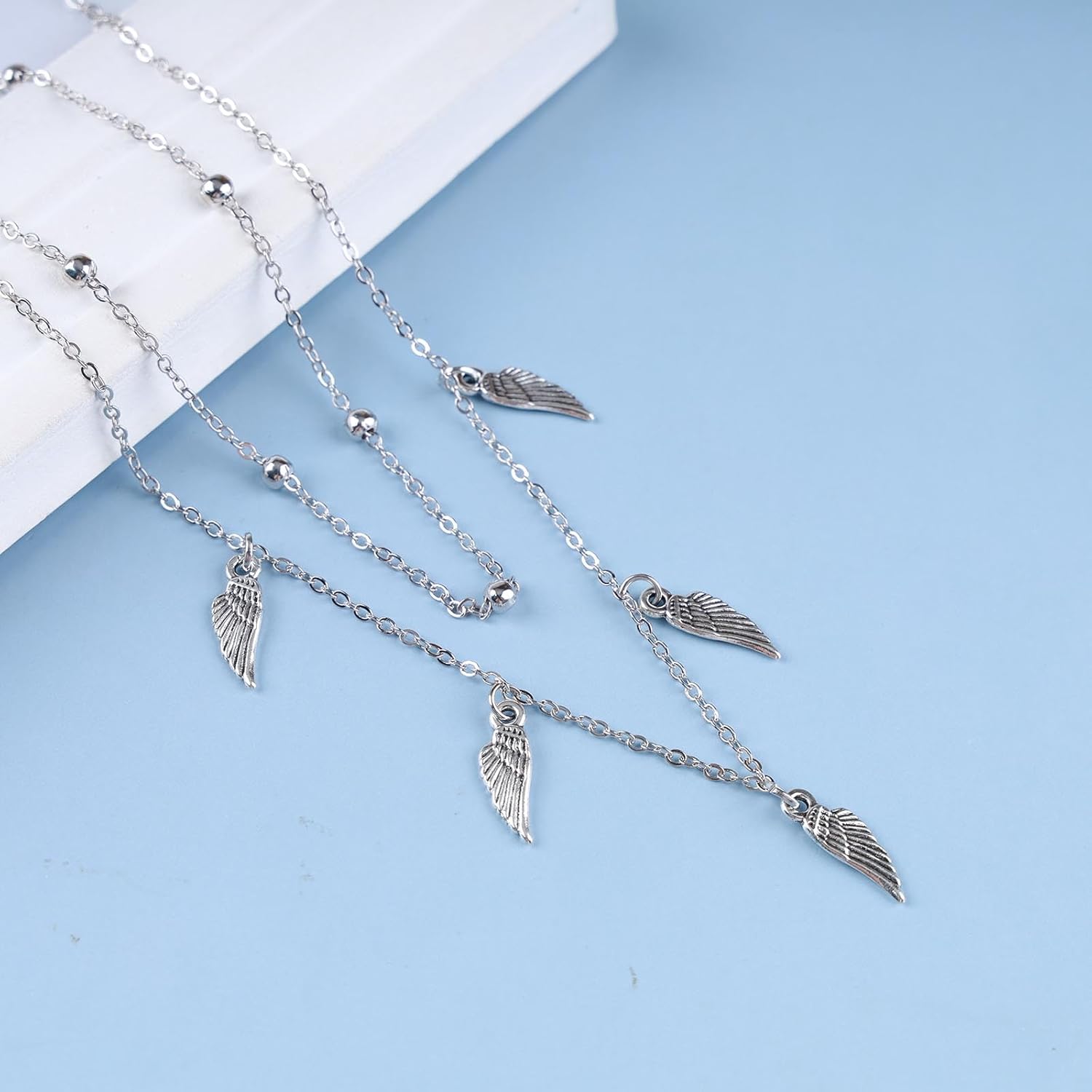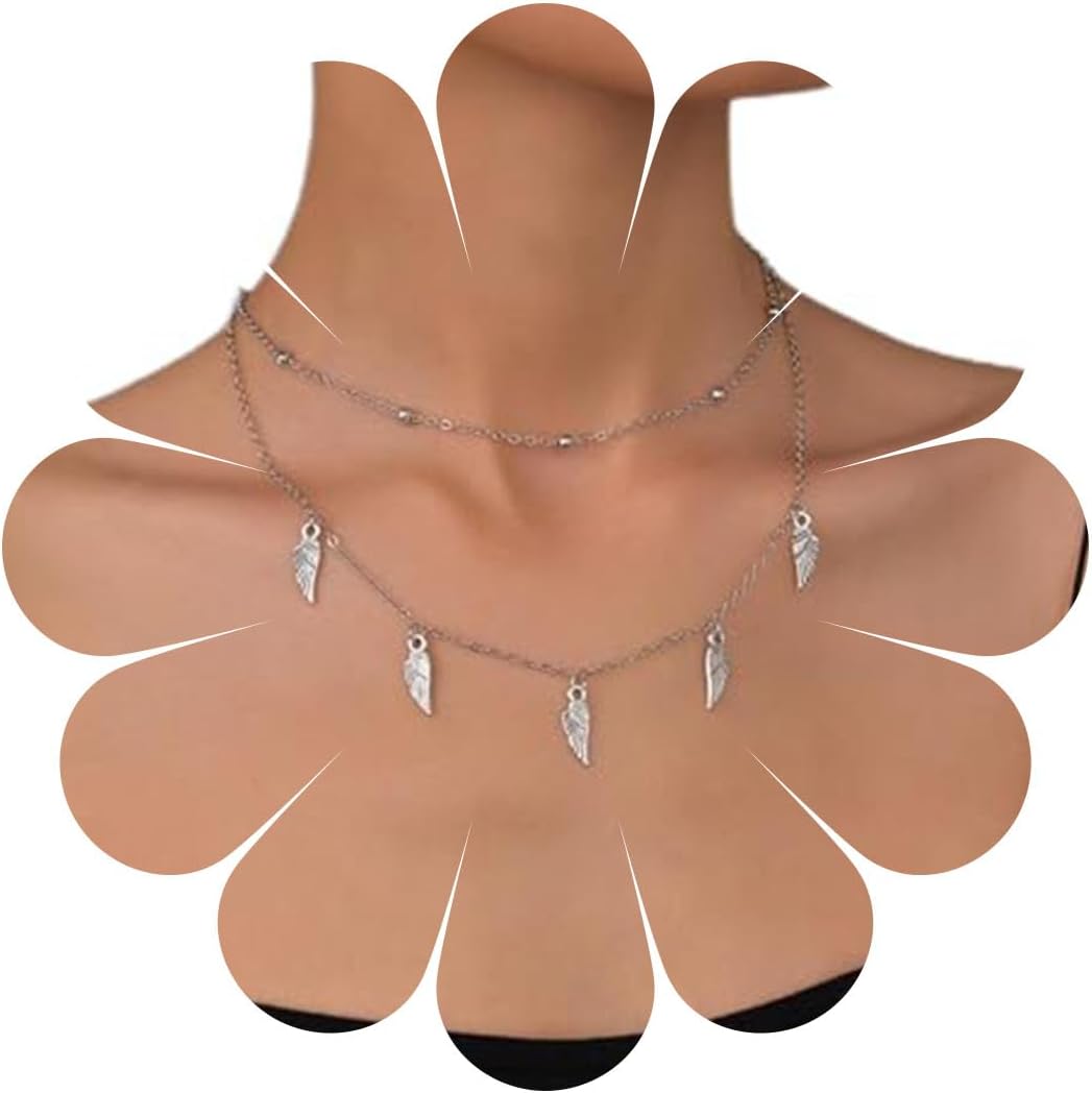 Vintage Layered Wing Dangle Necklace Angel Wing Pendant Necklace Tiny Wing Choker Necklace Silver Angel Wing Necklace Jewelry for Women