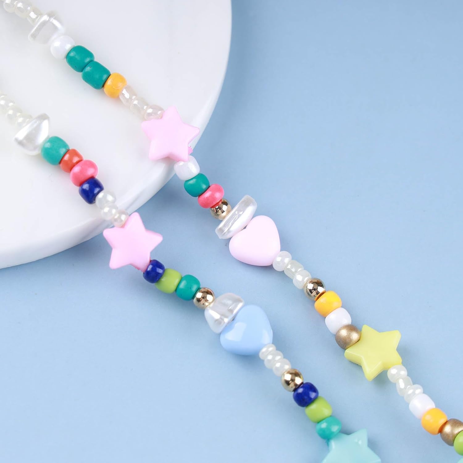 Vintage Seed Bead Choker Necklace Pearl Choker Necklace Colorful Star Heart Necklace Cute Rainbow Necklace Chain Jewelry for Women
