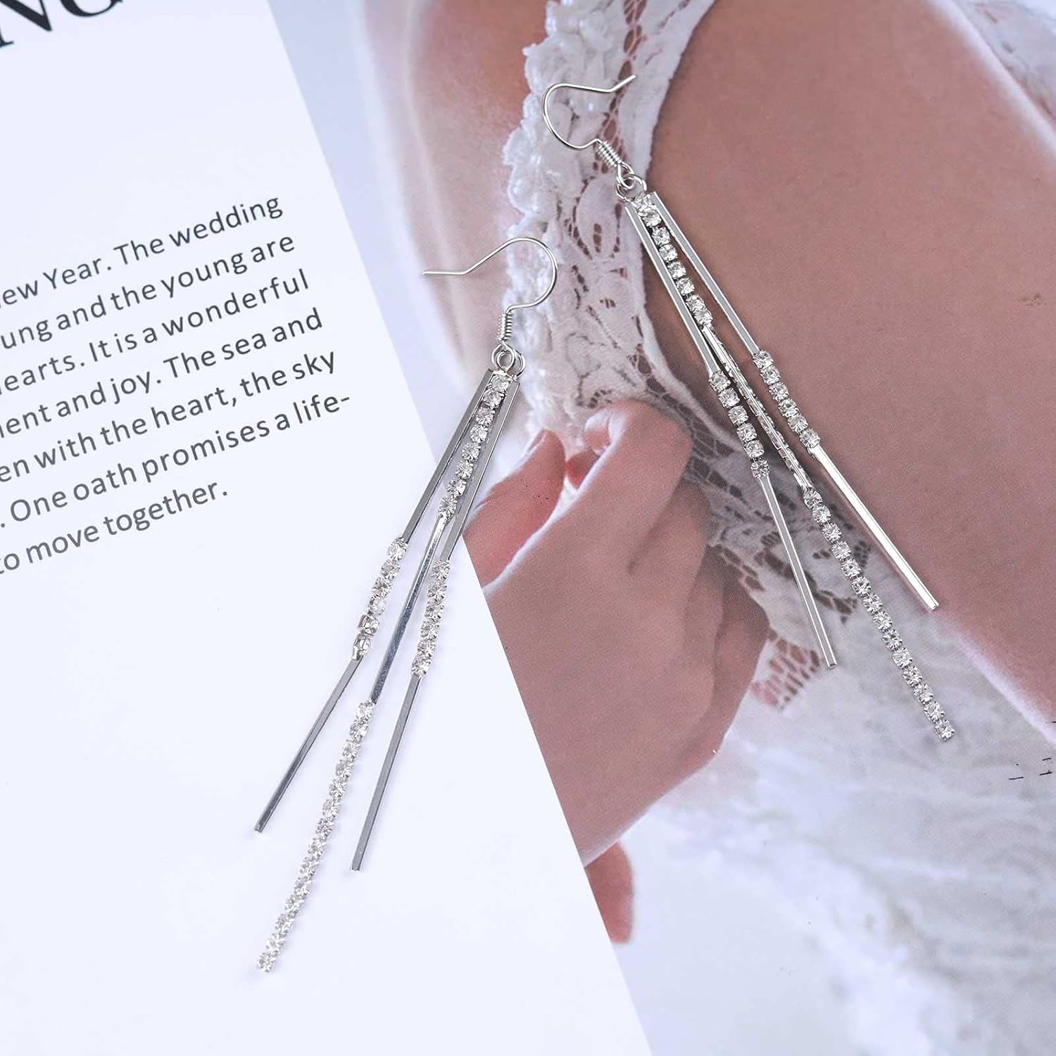 Vintage Crystal Tassel Earrings Rhinestone Bar Drop Earrings Long Rhinestone Chain Earrings Gold Cz Bar Hook Earrings Sparkle Tennis Chain Earrings Jewelry for Women