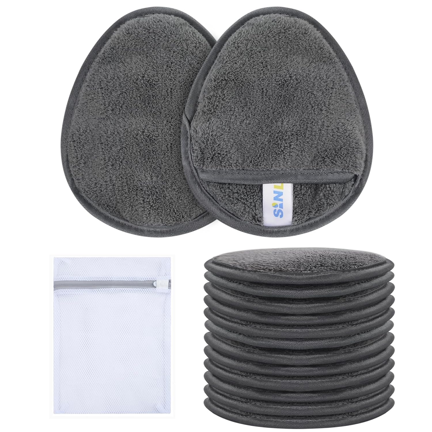 SINLAND Reusable Makeup Remover Pads For Face,Eye,Lips Microfiber Gentle Facial Cleansing Cloths for All Skin Types Friendly for Makeup Remover With Laundry Bag 5.1inchx3.93inch Grey Pack of 12
