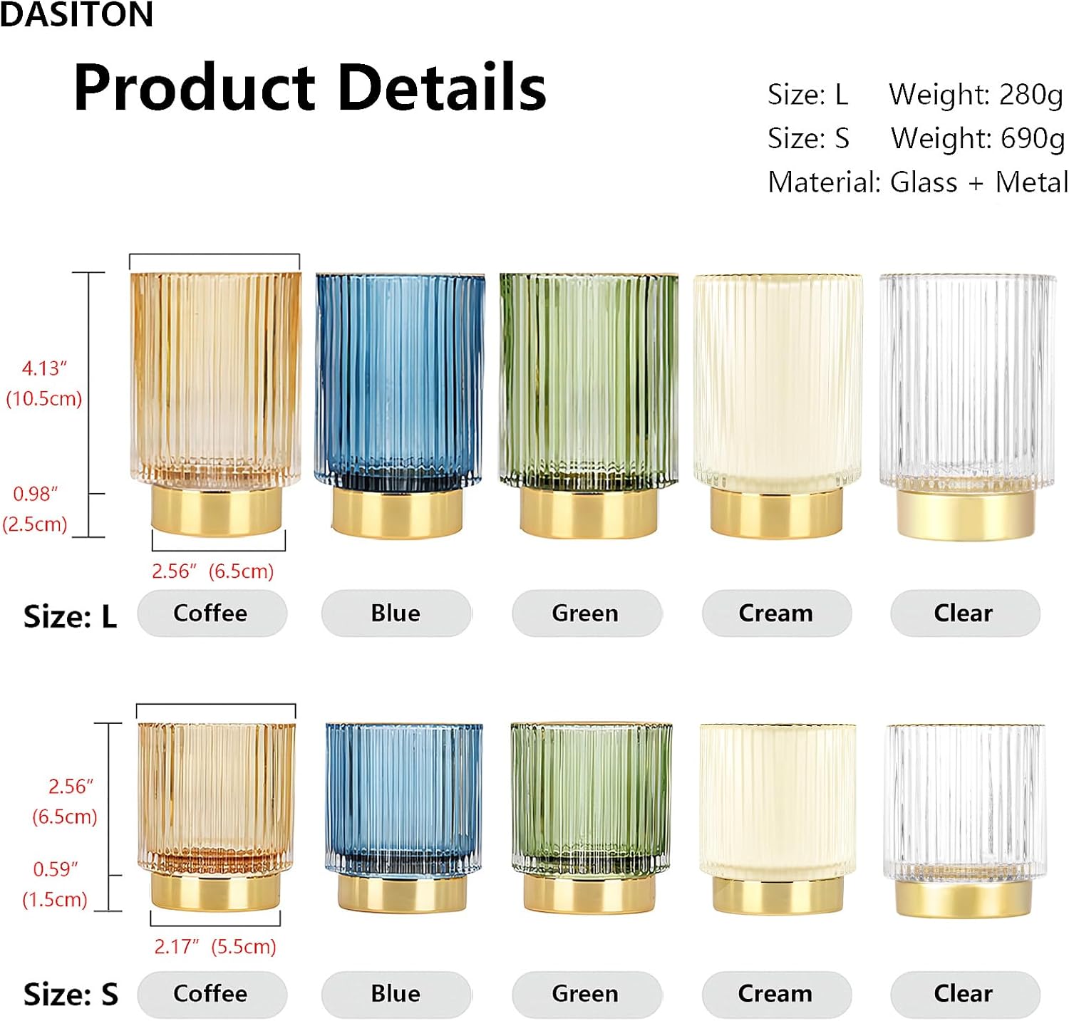 DASITON Makeup Brush holder Organizer,Crystal Cosmetic Makeup Brush Glass Brushes Storage Holder, Vintage Make Up Brush Cup Pen Pencil Holder striped vase(Cream L)
