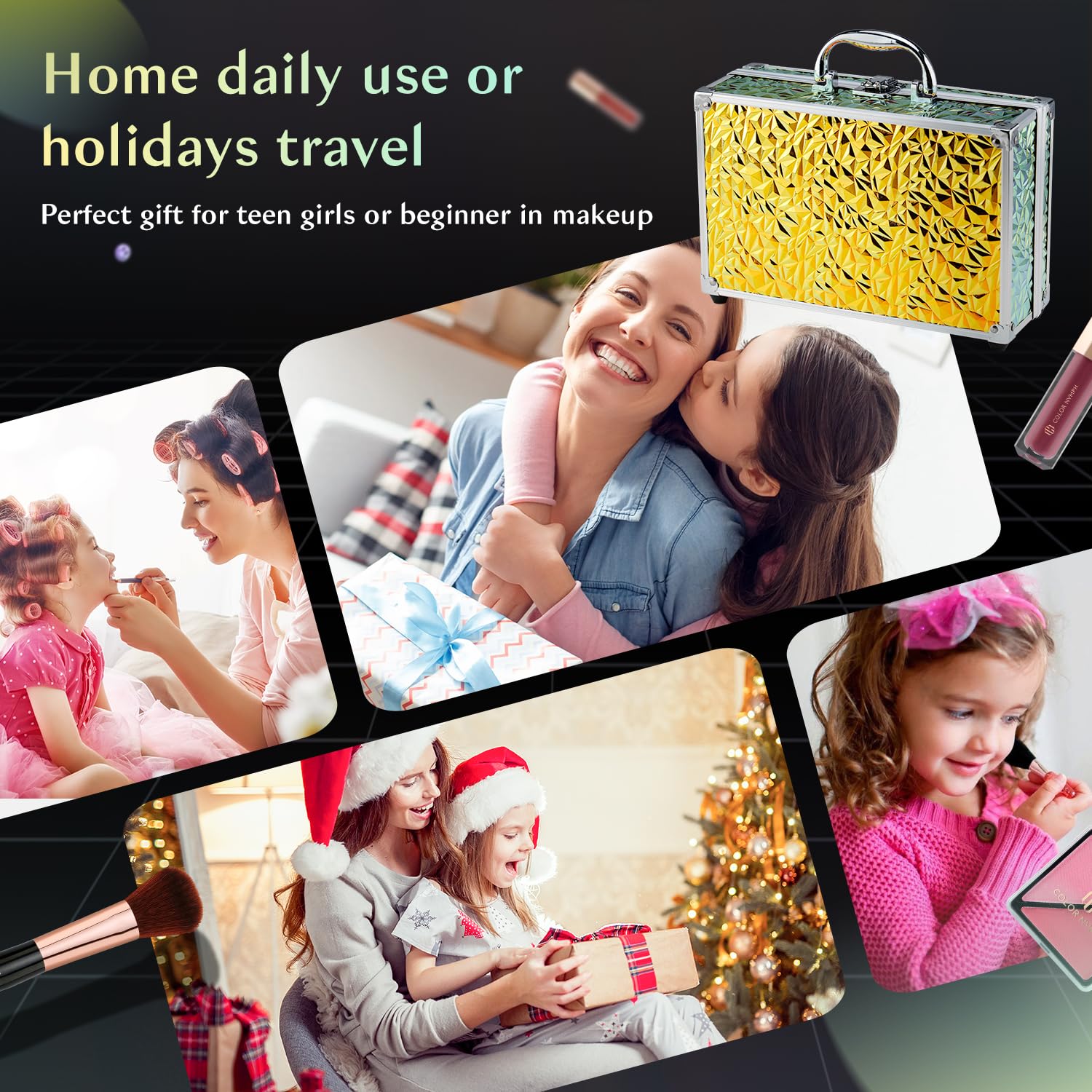 - Full Makeup Kit, Complete Coverage Almost: Teen girls makeup kit offers a range of colors and finishes to suit different skin tones and preferences, allowing users to create a variety of looks. And The makeup kit for teen would cover all the essential makeup categories such as foundation, blush, eyeshadow, mascara, eyeliner, lipstick, and more. Considering that carry around and to keep makeup kits organized, Color Nymph beginner makeup kit comes with a train case for storaging.