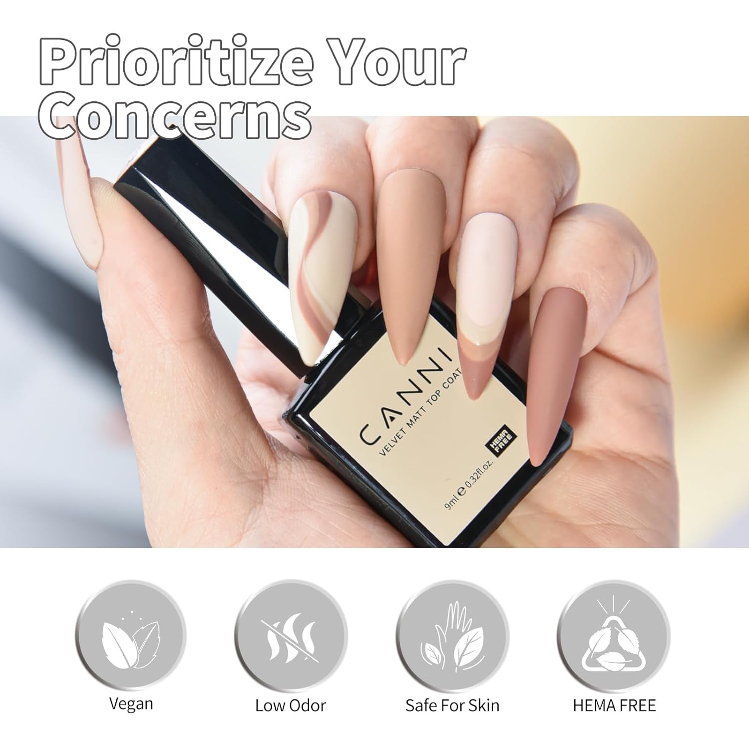 - Long-Lasting & Professional Quality: CANNI 2Pcs Base and Matte Top Coat Set Provides salon-quality results at home, keeping nails shiny for up to 4 weeks