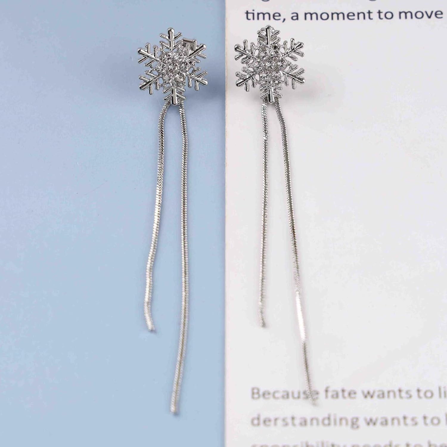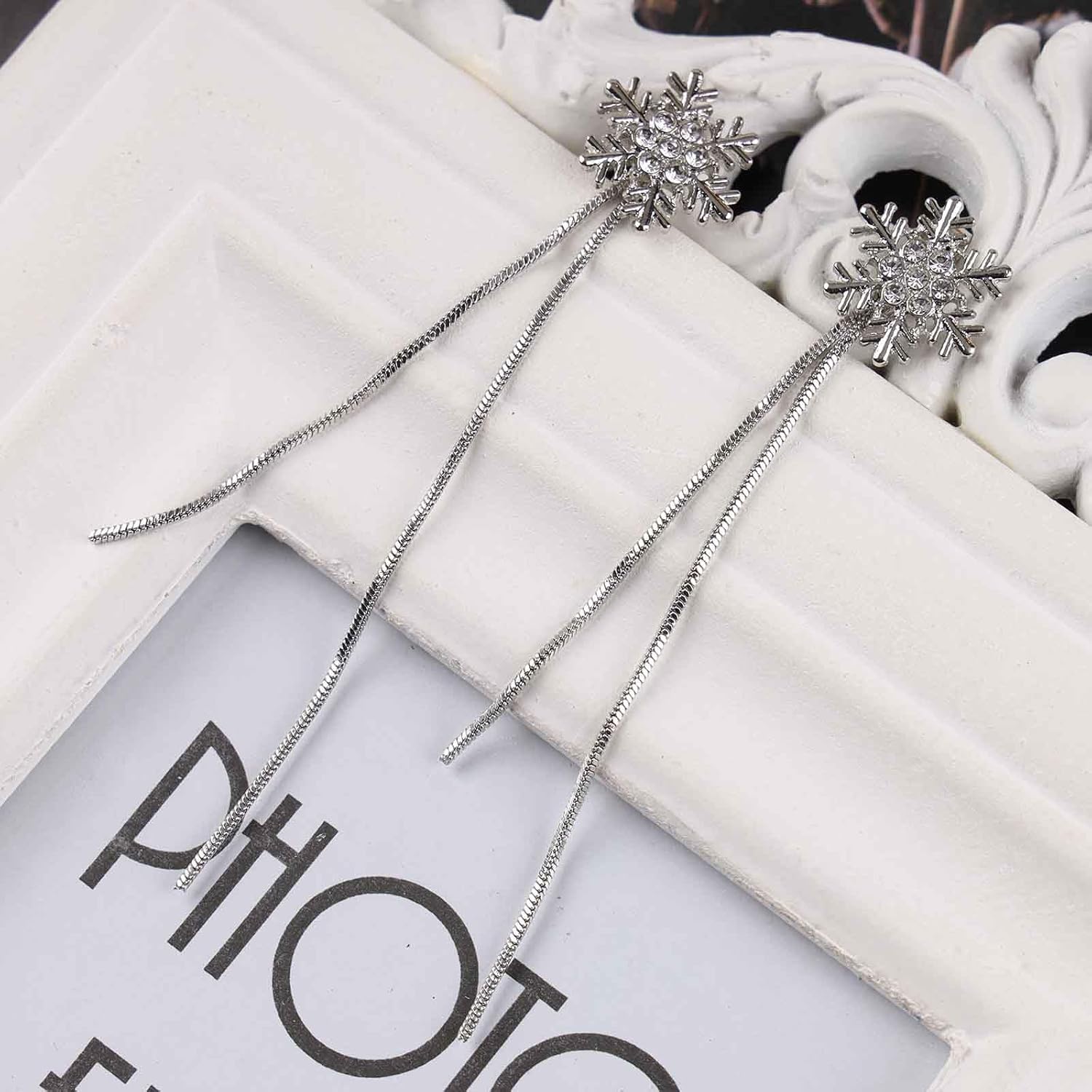 Vintage Crystal Snowflake Chain Earrings Cz Snowflake Stud Earrings Silver Long Chain Tassel Earrings Metal Snake Chain Drop Earrings Jewelry for Women