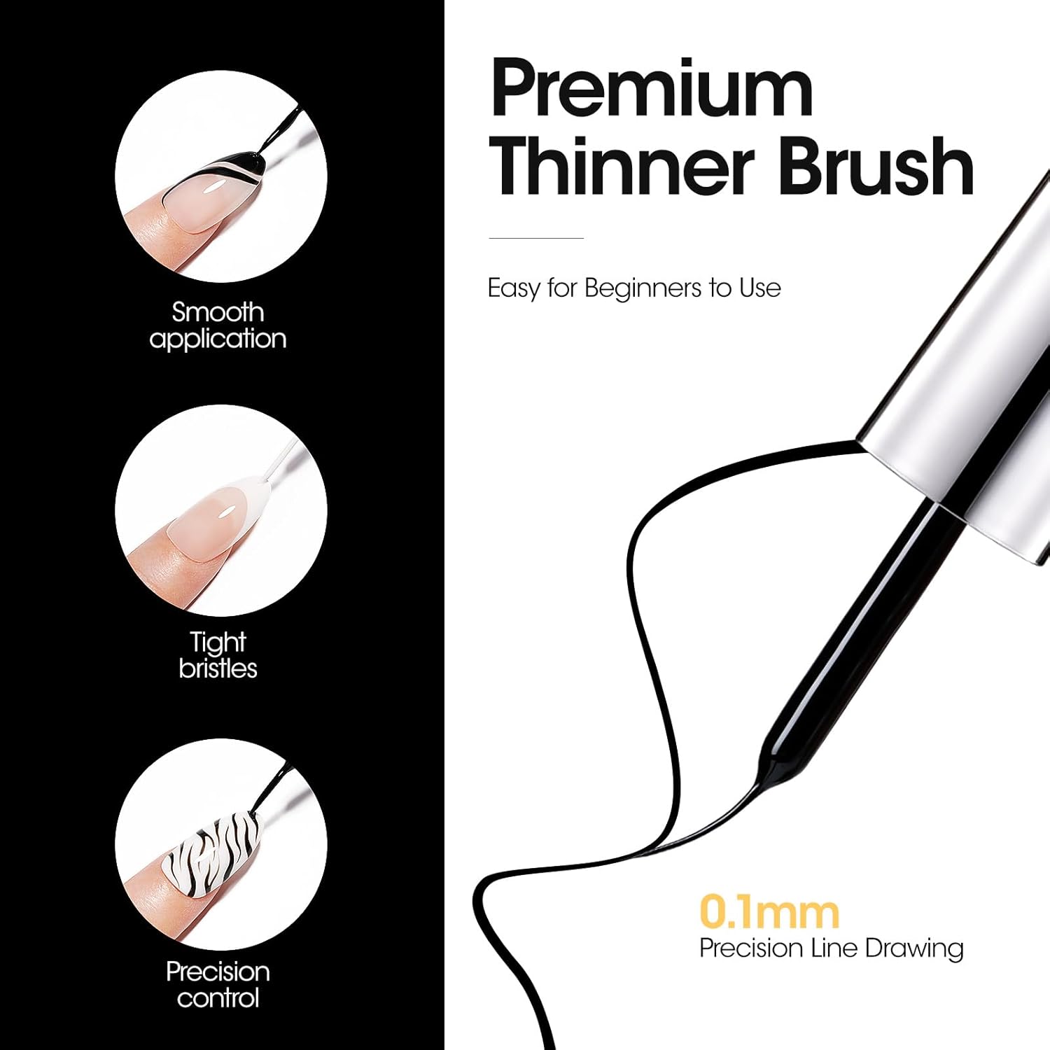 - Upgraded Built-in Brush: Nail polish liner gel with slimmer and thinner line brush can provide you with clean and flawless lines, convenient for beginner or pro to create fantastic nail art. Be sure to wipe off excess polish to get a good defined line before applying
