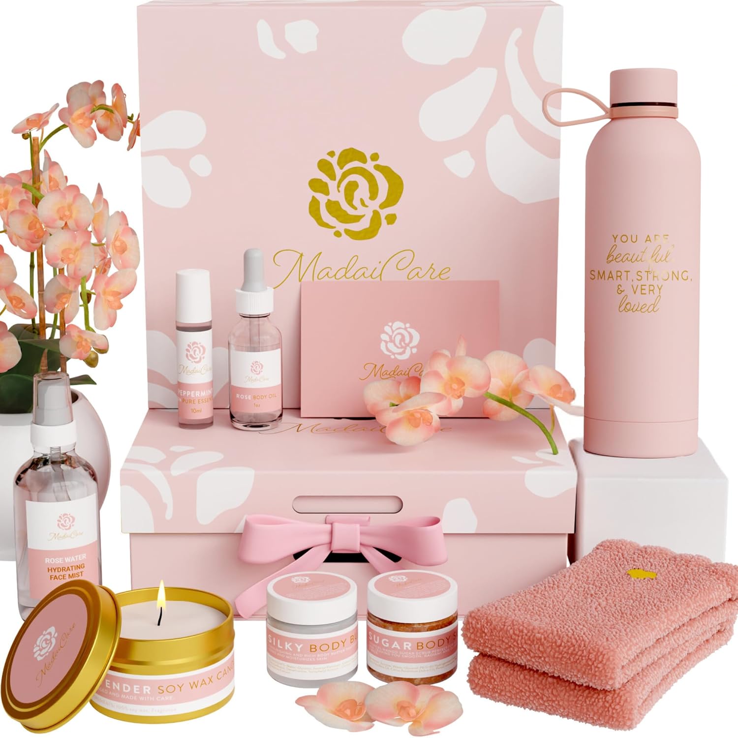 - PERFECT GIFTS FOR WOMEN ALL OCCASIONS: Whether it’s a birthday gift for women, an anniversary gift for your wife, or a thoughtful gesture for your mom, aunt, sister, friend, colleague or Mother's Day, Christmas, the Madai Care Home Spa Gift Set is ideal for any occasion. Treat your loved ones to a luxurious gift basket experience with our meticulously curated get well products.