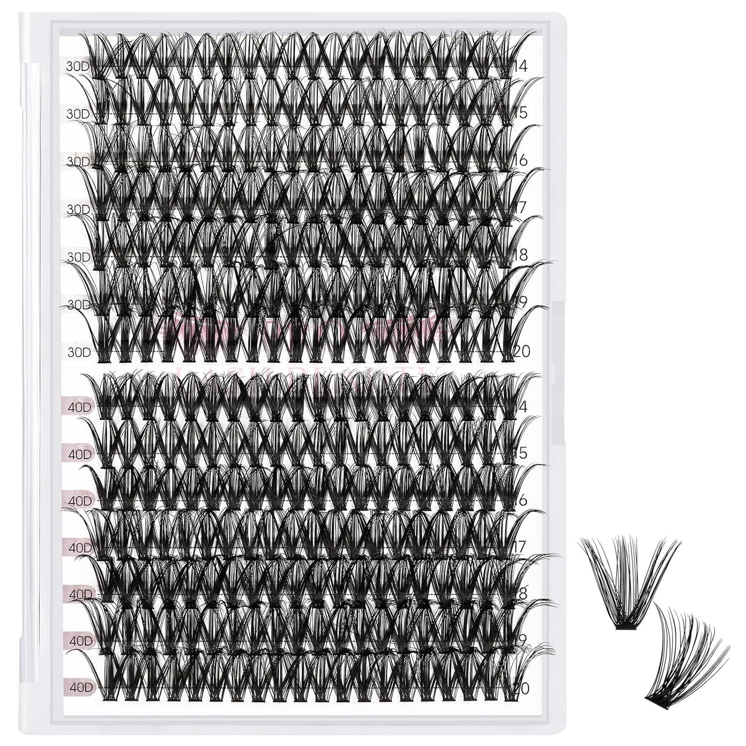 280 Pcs Individual Lashes 40D+50D Mixed Lash Clusters 14 Rows Cluster Lashes that Look Like Eyelash Extensions DIY Lash Extension Self Application At Home (40+50-D-14-20mix)