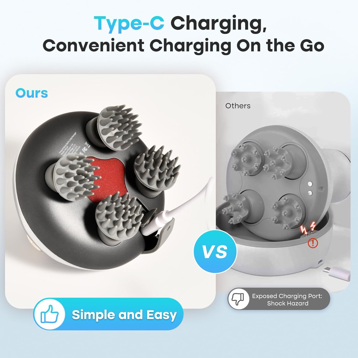 - Scalp Relax : Discover the ultimate comfort with our state-of-the-art scalp massager, offering a 360° rotating kneading massage that effectively relaxes the scalp. Designed to emulate the sensation of human hands, it features three adjustable massage speeds and a convenient one-touch switch, allowing you to effortlessly unwind and help your sleep quality.