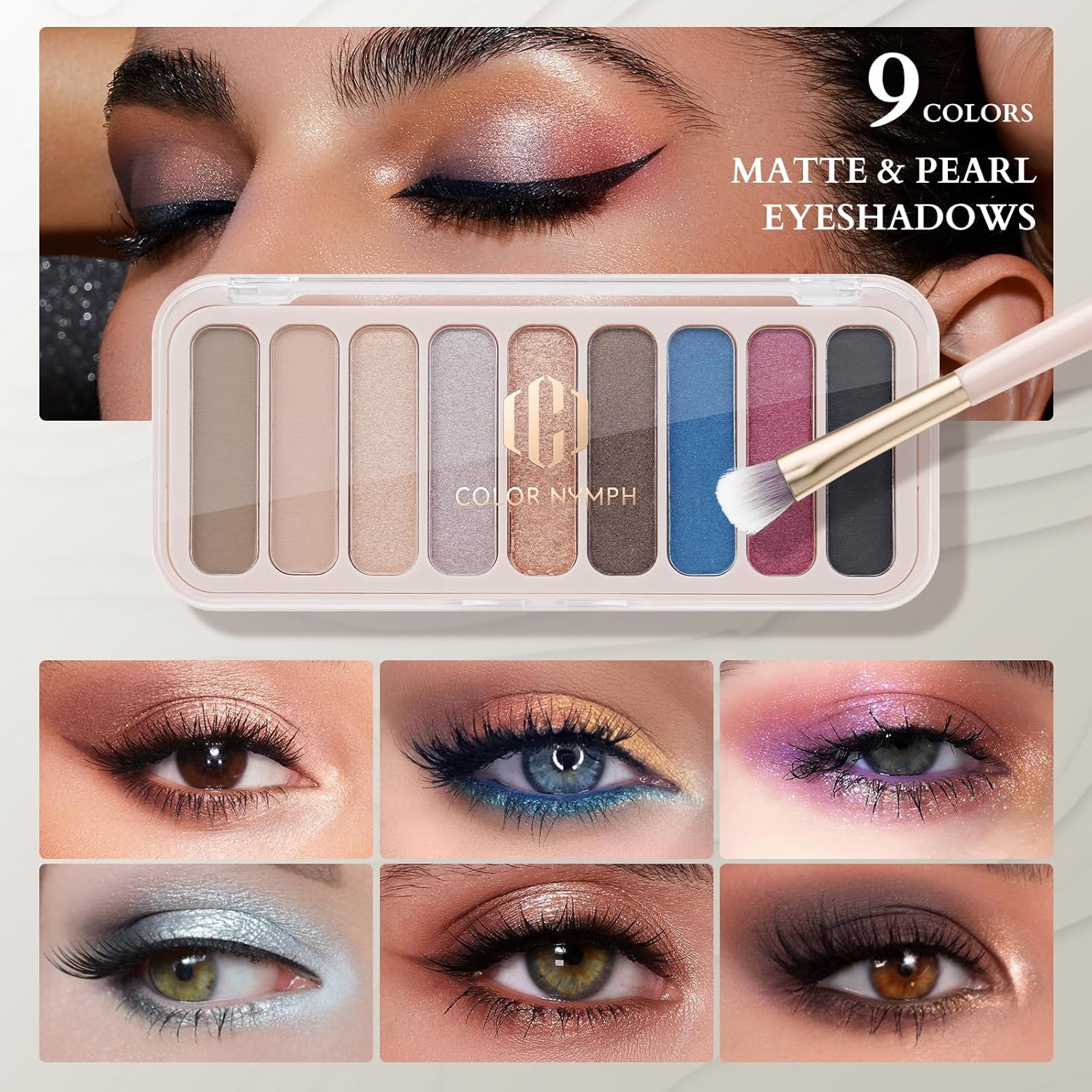 Color Nymph Girls Makeup Kit for Teens Girls with Cosmetic Bag, Full Face Makeup Kit For Women included 9 Color Eyeshadow Palette Concealer Liquid Blush Eyeliner Lipgloss