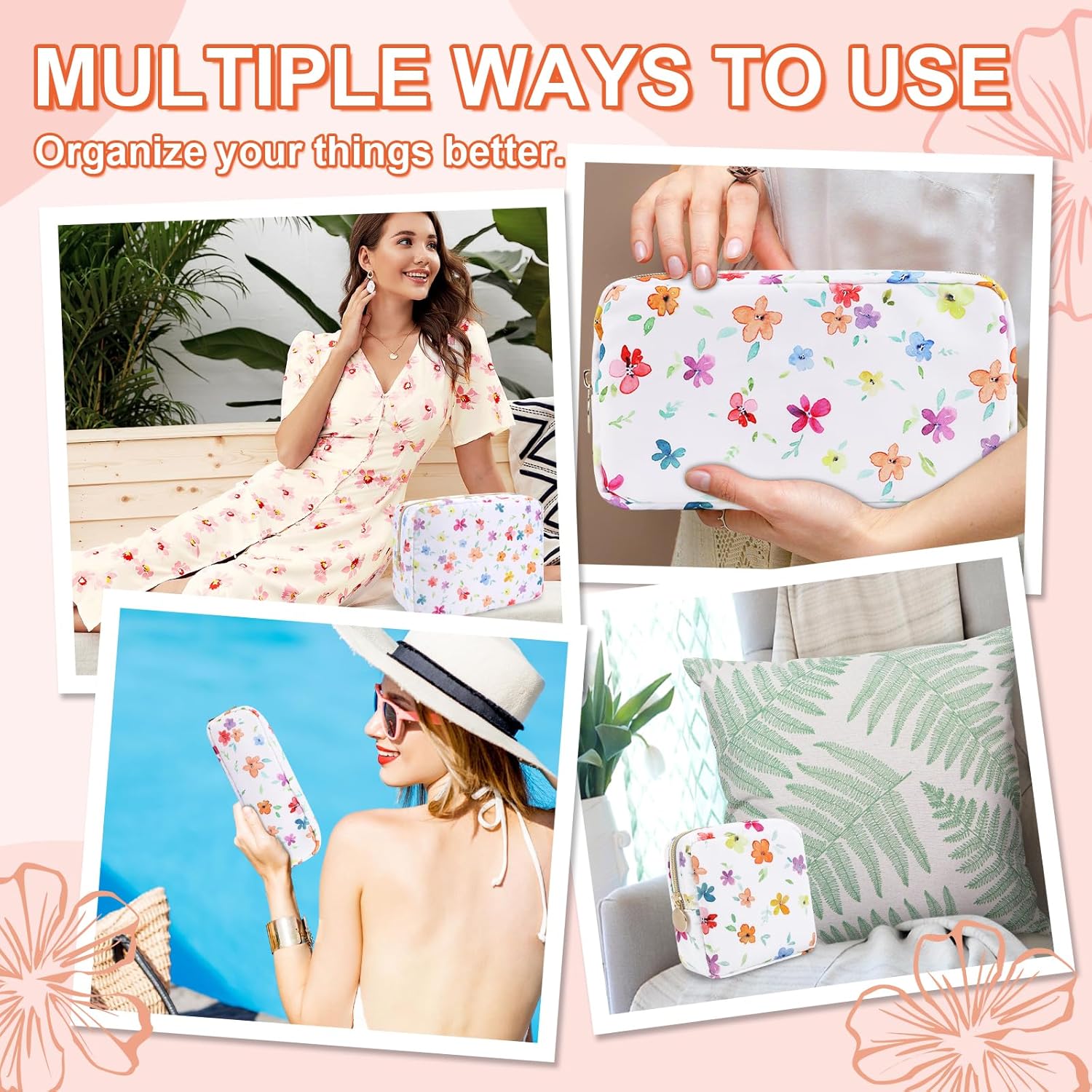 Waterproof Small Floral Makeup Bag Pouch for Purse,Nylon Flower Cosmetic Bag Preppy Travel Toiletry Storage Bag for Women Girl,Cute Makeup Organizer Bag Pouch with Zipper(Small Colorful-Flowers)