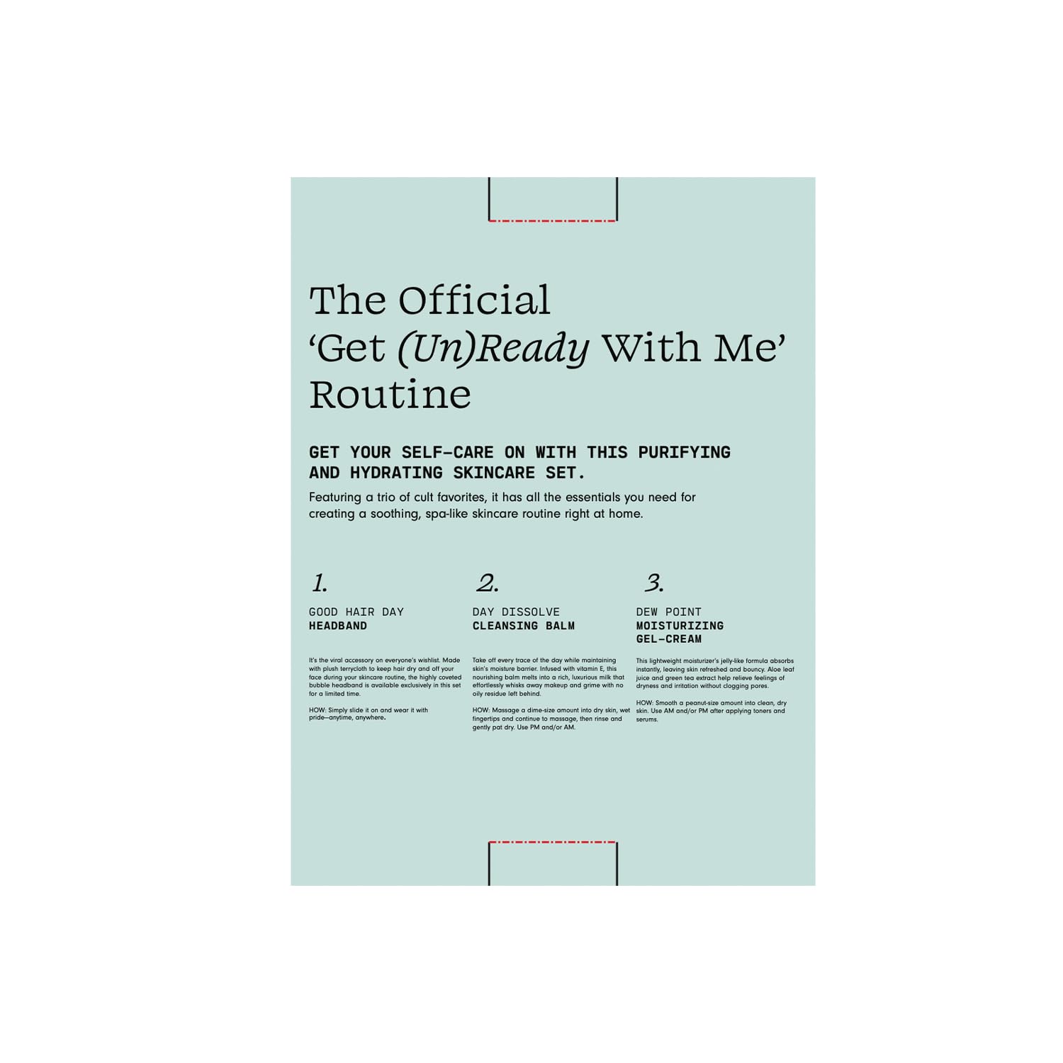 - The Official ‘Get (Un)ready With Me’ Routine - Get your self care on with this purifying and hydrating travel skincare kit. Featuring a trio of cult favorites, it has all the essentials you need for creating a soothing, spa-like skincare routine at home.