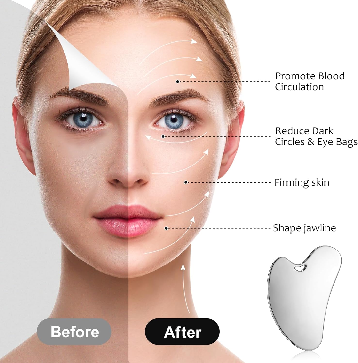 Gua Sha Facial Tools Guasha Tool Gua Sha Jade Stone for Face Skincare Facial Body Acupuncture Relieve Muscle Tensions Reduce Puffiness Festive Gifts (Matte Silver)