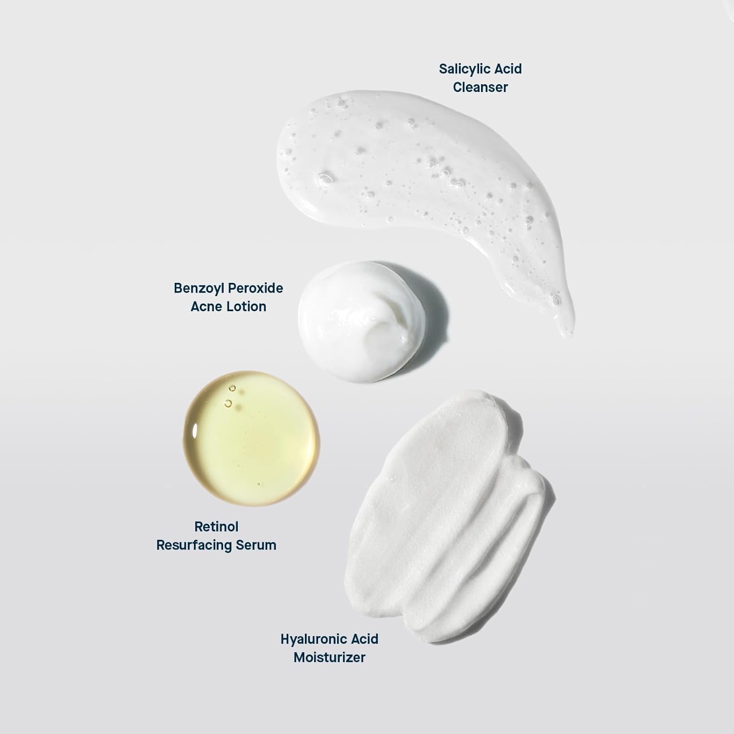 - PRODUCTS THAT ARE BETTER TOGETHER: Salicylic Acid Cleanser gently cleanses and exfoliates keeping pores from clogging with oil and debris. Benzoyl Peroxide Acne Lotion treats and prevents inflammatory acne like pimples and pustules. Retinol Resurfacing Serum speeds up cell renewal to keep pores clear and minimize the look of dark spots, fine lines and wrinkles. Hyaluronic Acid Moisturizer helps to mitigate any irritation that may arise from using acne treatments.
