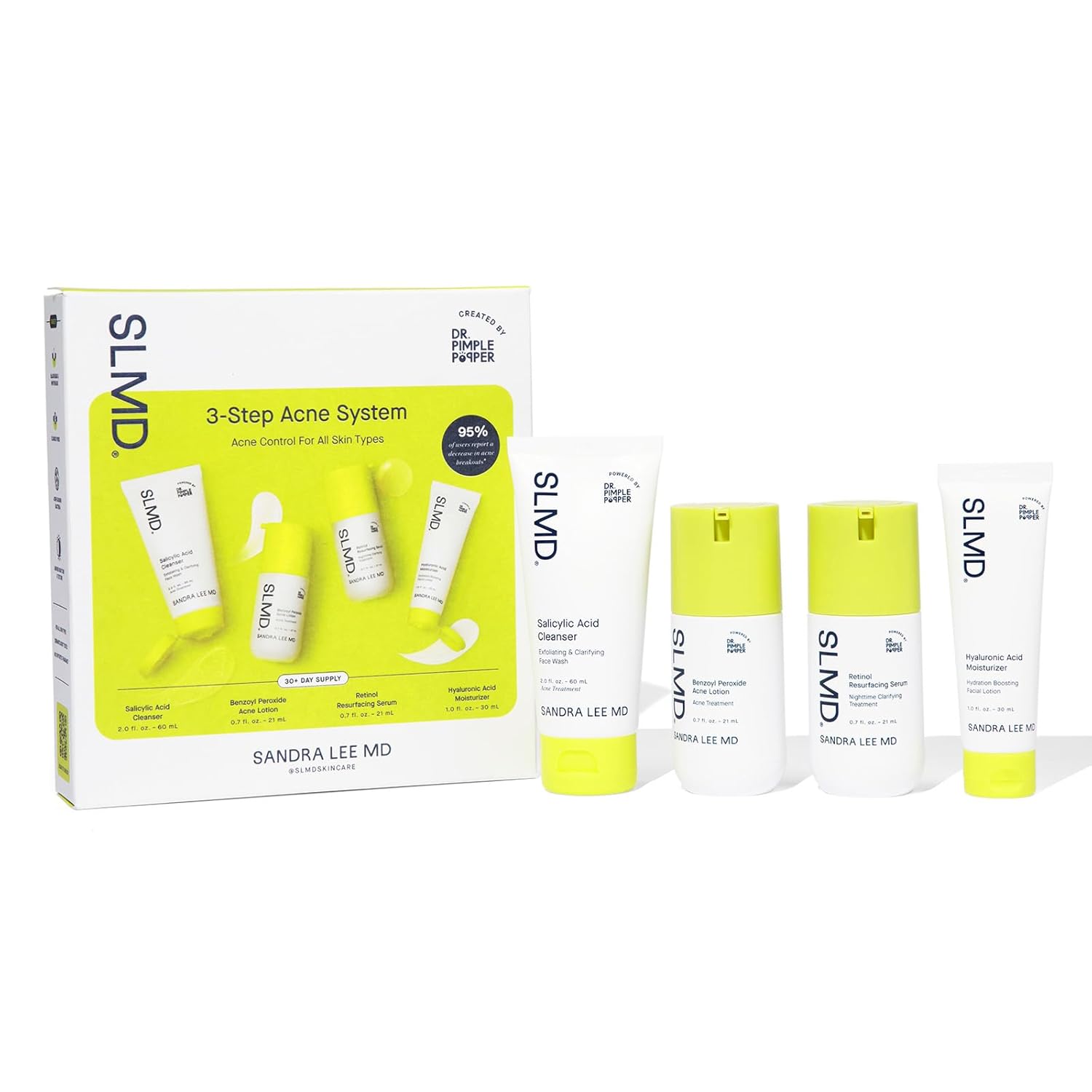 SLMD Skincare by Dr. Pimple Popper - 30-Day Acne System - 4-pc Kit - 3 Steps, 2x per Day Full Routine to Treat and Prevent All Stages of Acne